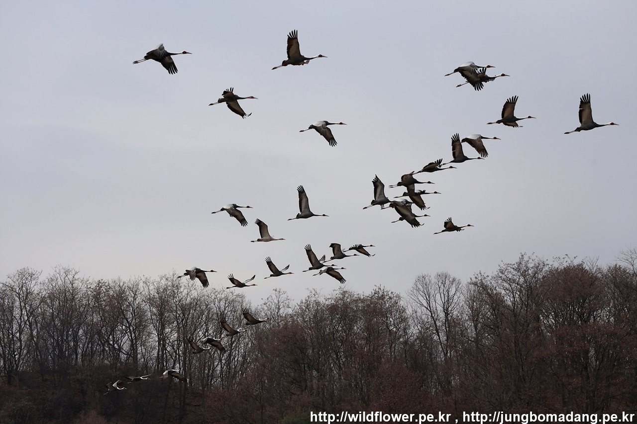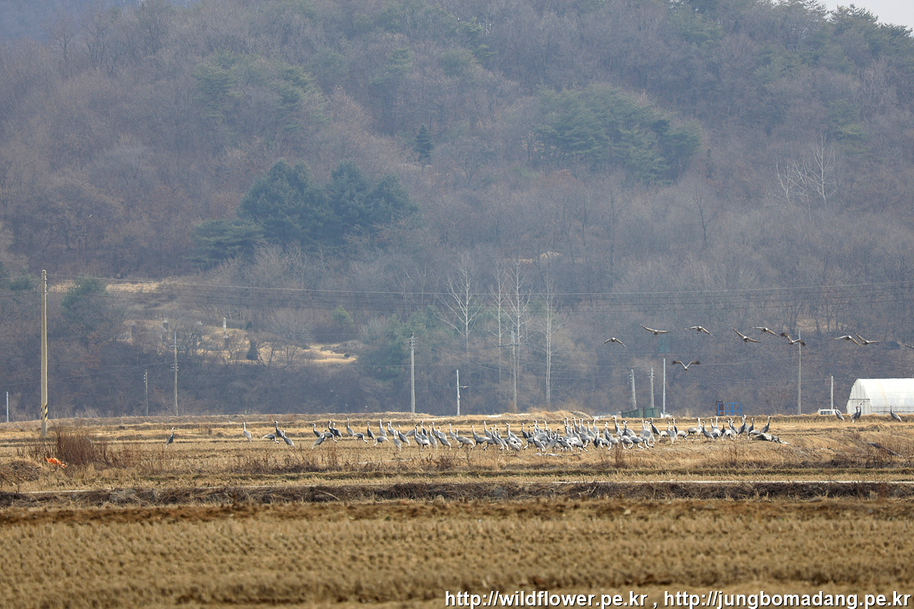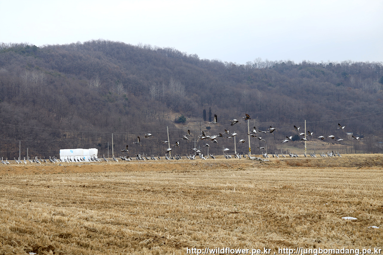 재두루미 비상 - 많은 무리의 재두루미들이 다행히(?) 제가 가는 방향으로 이동하네요.