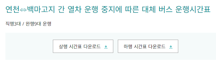 동두천역 ~ 백마고지역은 열차가 운행되지 않아서 셔틀버스(교통카드 1000원, 소요시간 1시간 ~ 1시간 15분)를 이용해야 합니다.