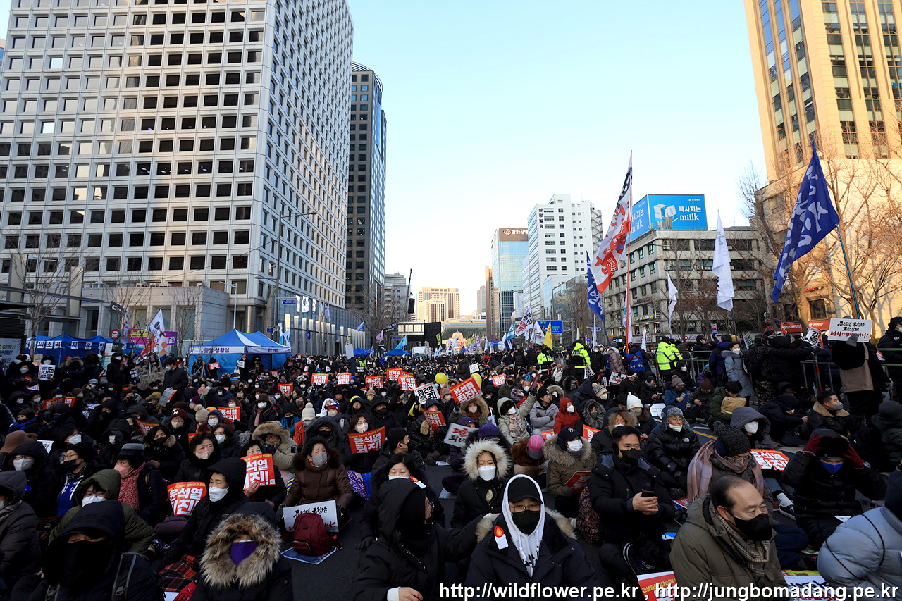 전국에서 추운 날씨에도 불구하고 집결 중입니다.