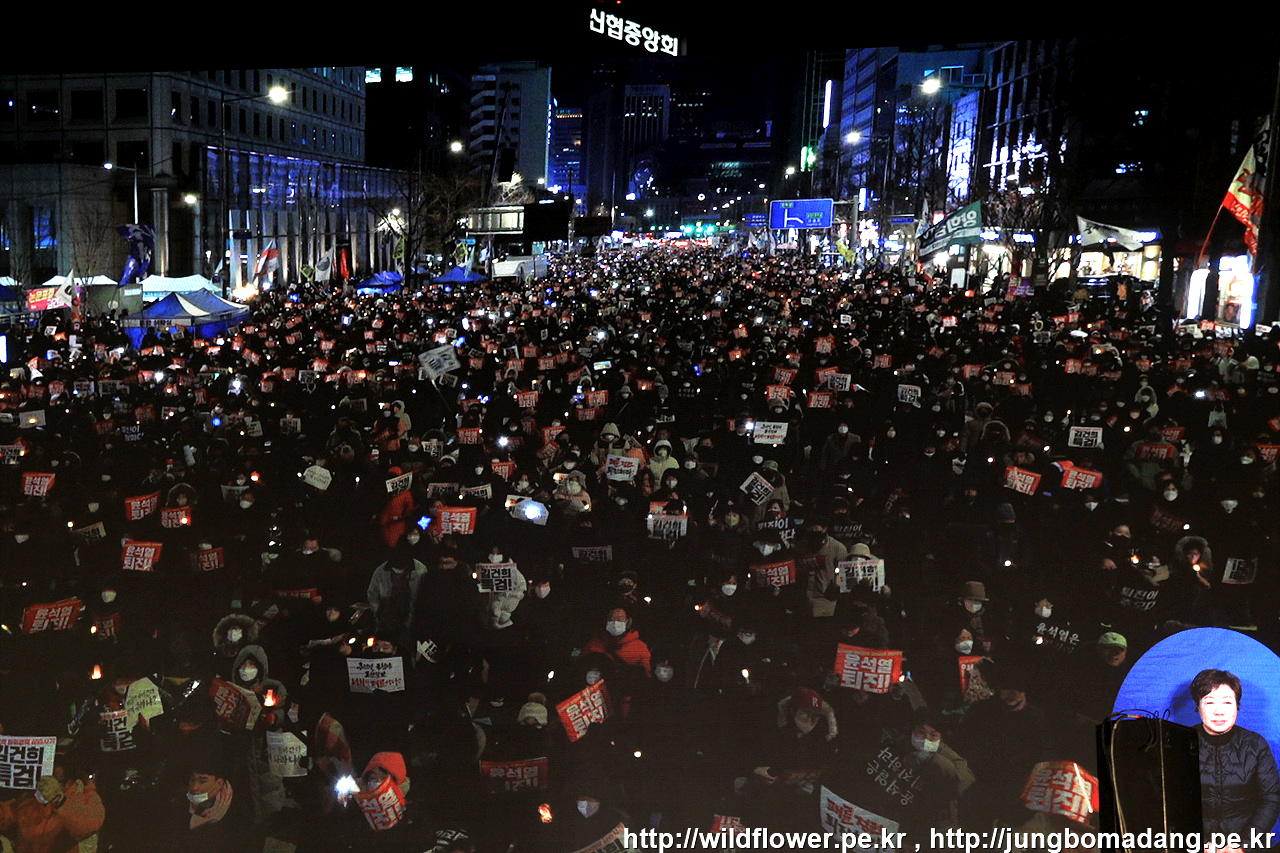 네번째 전국 집중 촛불대행진으로 꽤 추운 날씨일 것 같은 데 지난번 보다 많은 분들은 오실 거라 기대하지 않았지만, 날씨가 손발이 저리고 추운 한파 속에 15만명이 모였다는 것은 대단한 것이라고 생각합니다.