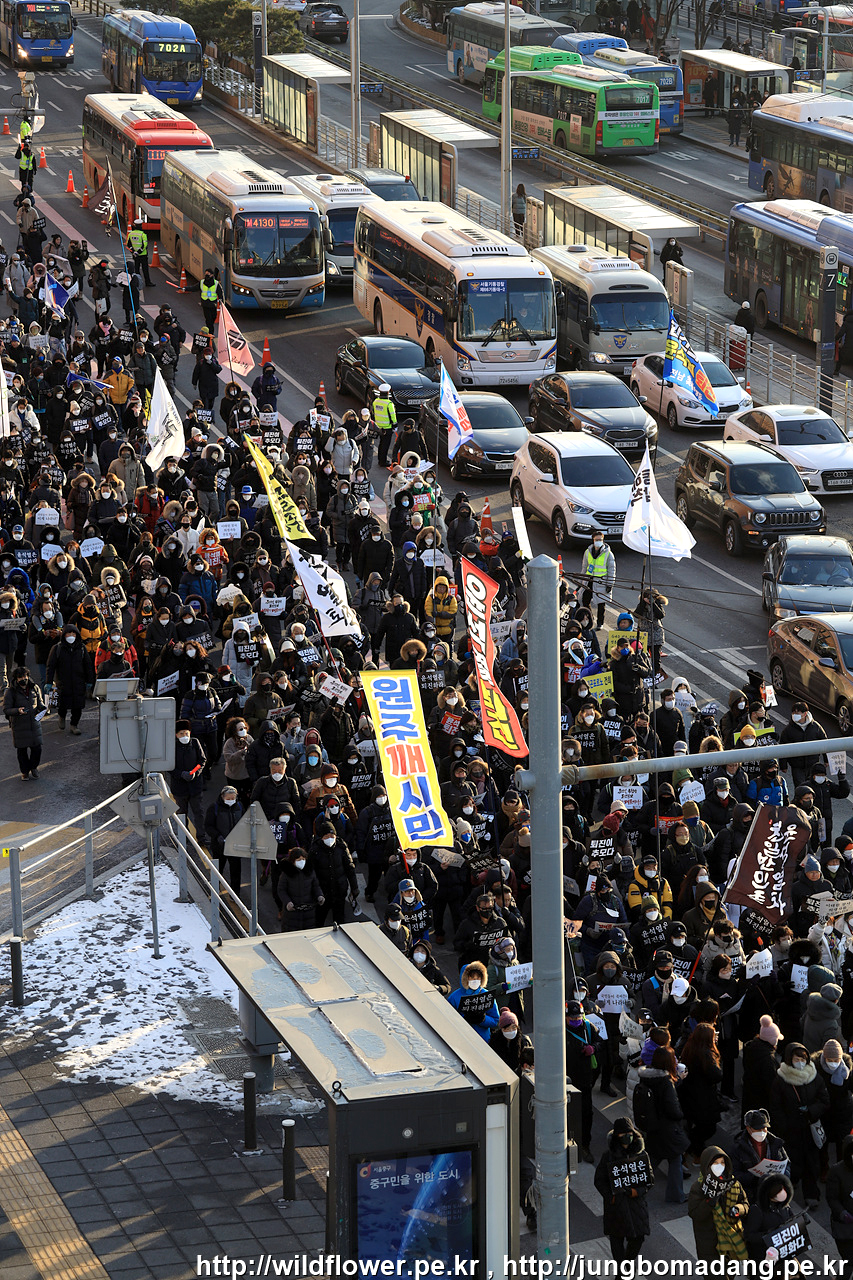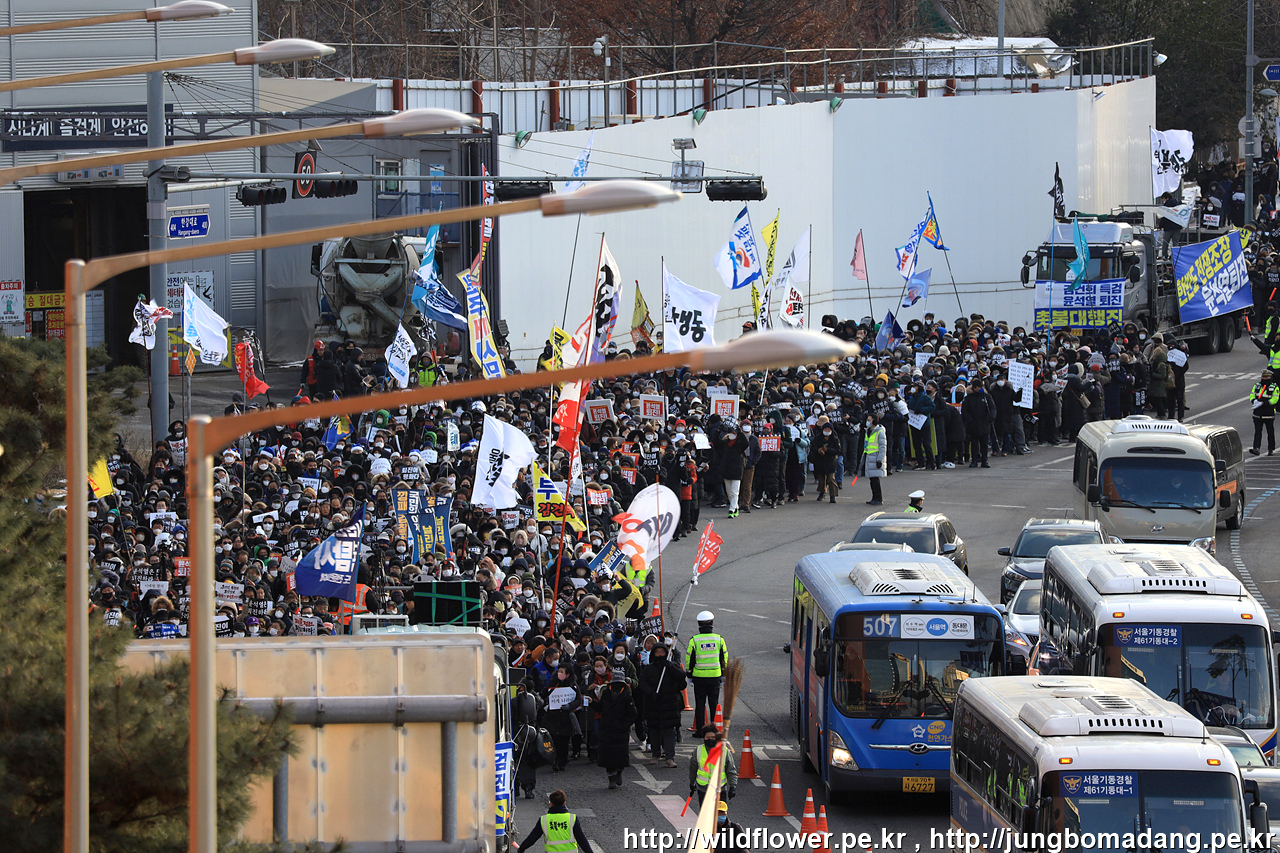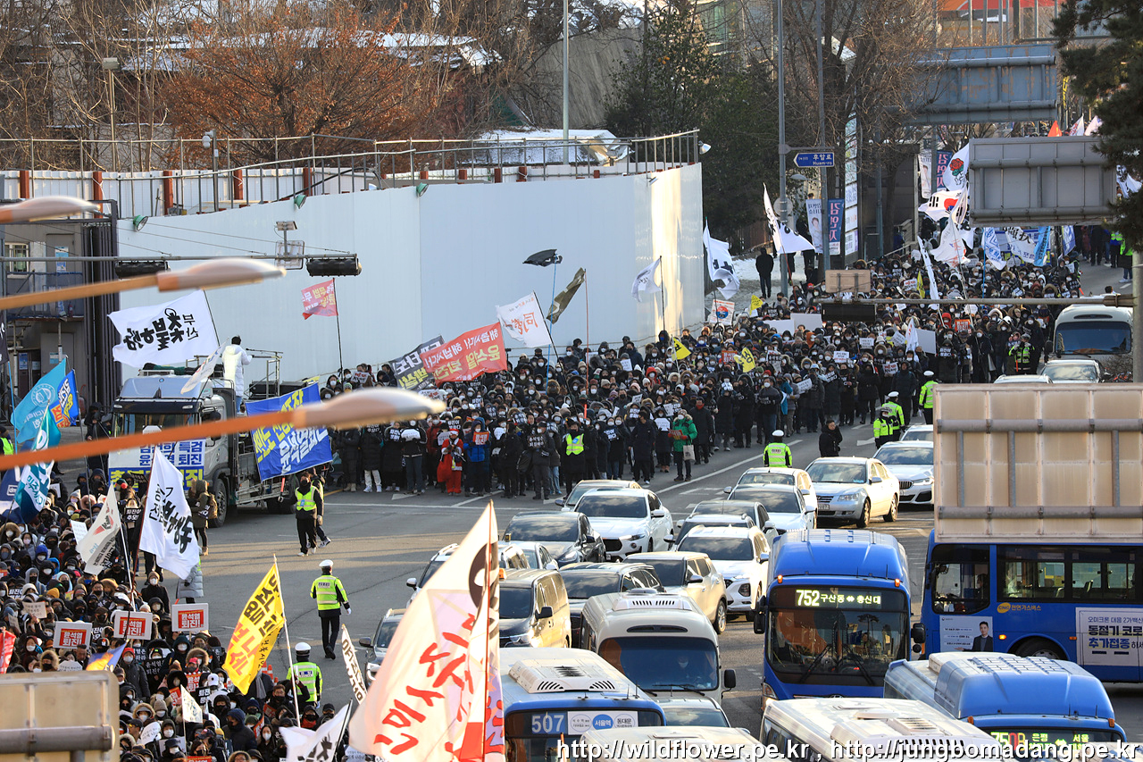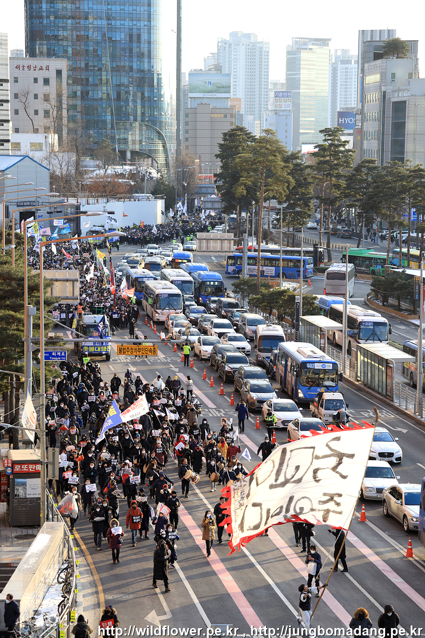 전국에서 추운 날씨에도 불구하고 집결 중입니다.
