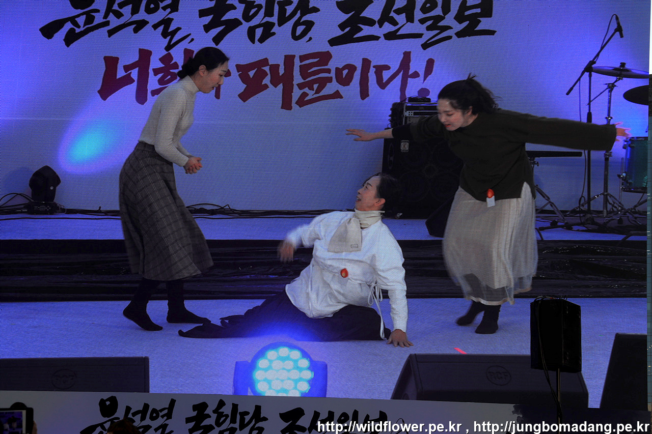 뱃노래 시간인 데, 중간에 신호에 맞춰 윤석열 현수막을 찢는 시간을 가져 봅니다.