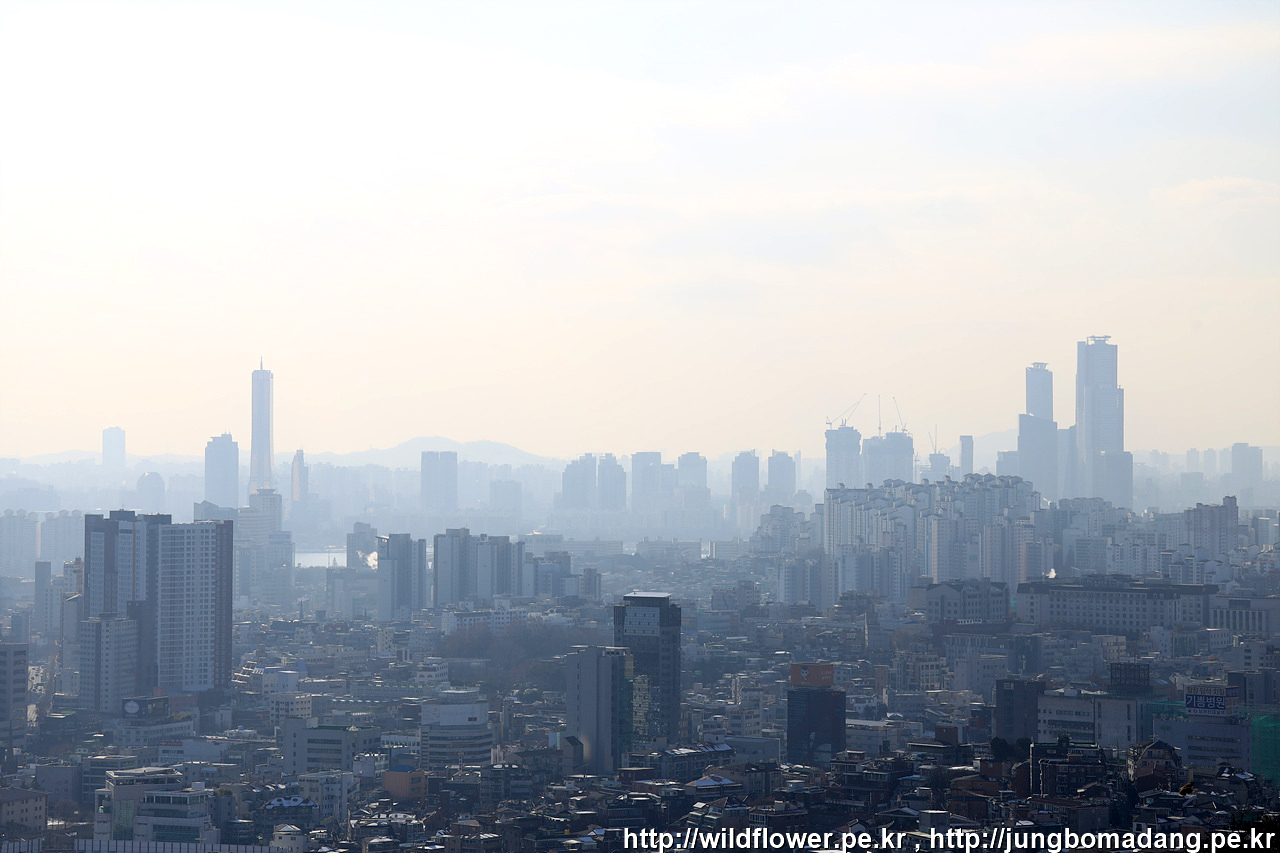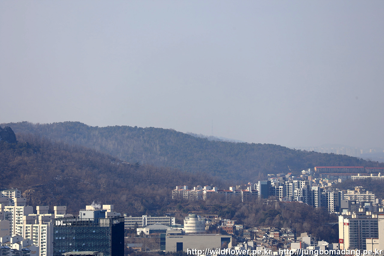전망대에서 한장. 전면에 좌측으로 인왕산, 북악산, 그 뒤로 북한산이 보입니다.