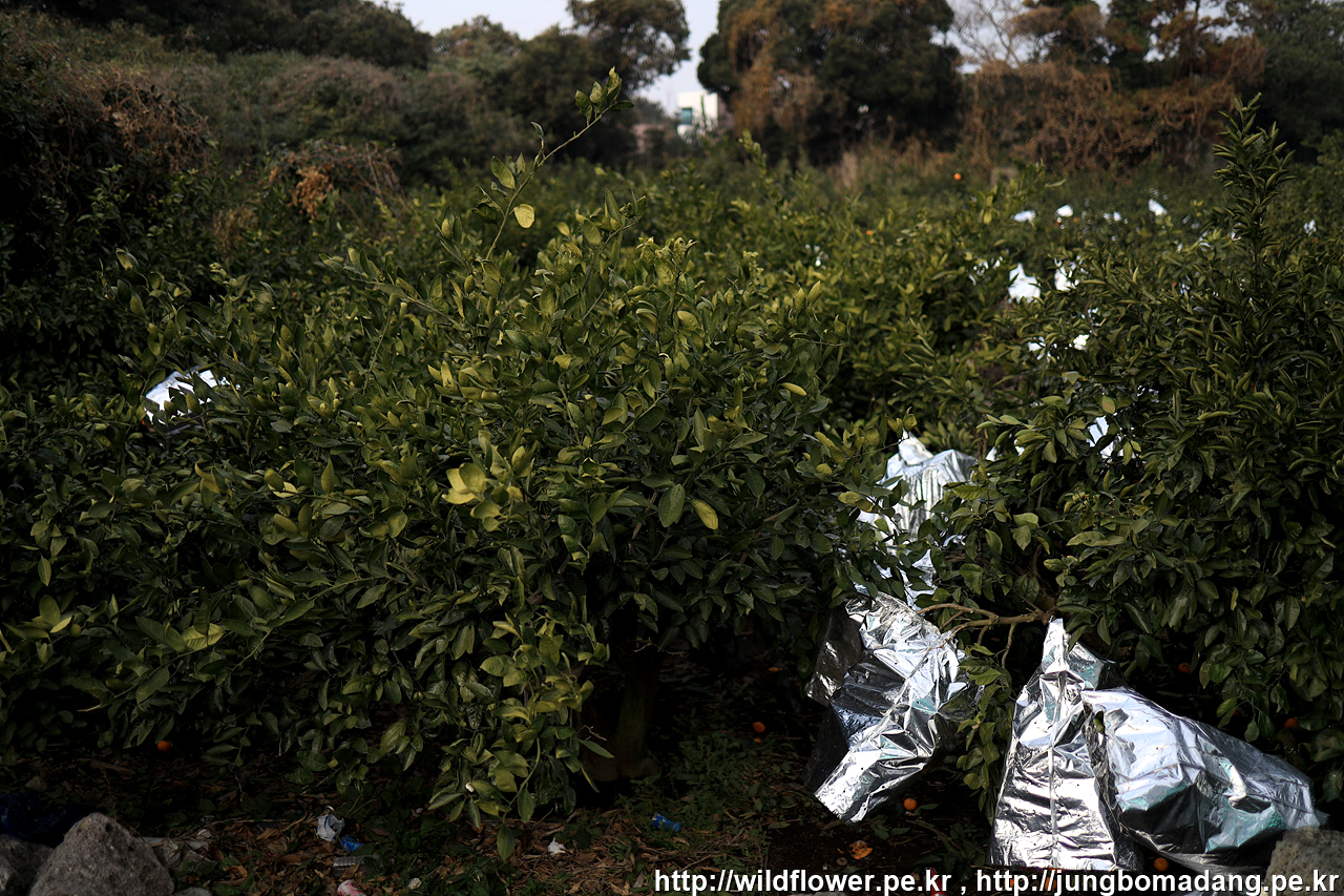 은박 감귤 - 노지 감귤의 겨울 월동을 위해 은박을 씌우는 데, 수확 시기가 늦춰진다고 합니다.