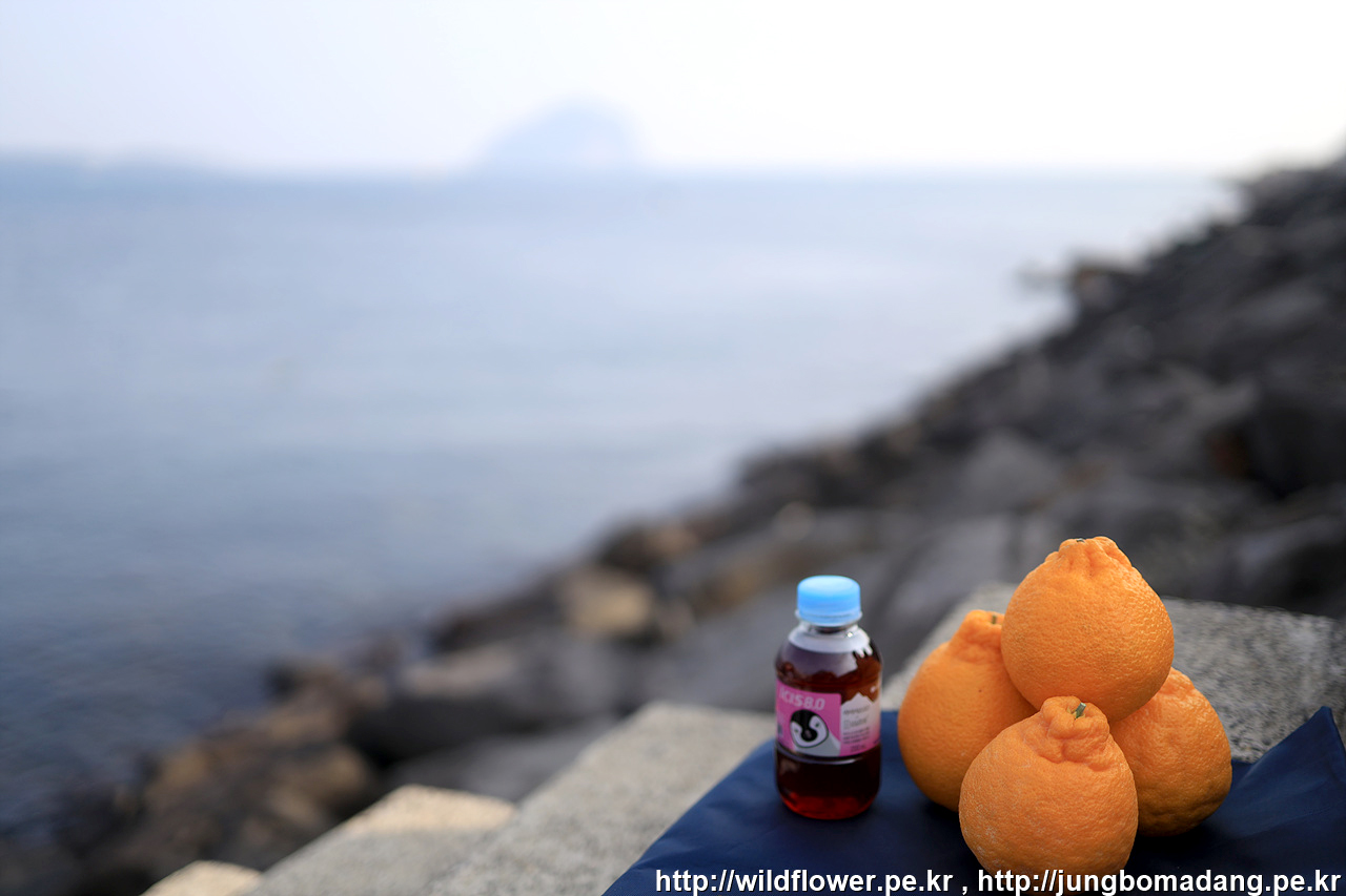 집에서 챙겨온 오미자주 200ml와 함께 조금 전 구매한 한라봉을 먹습니다.