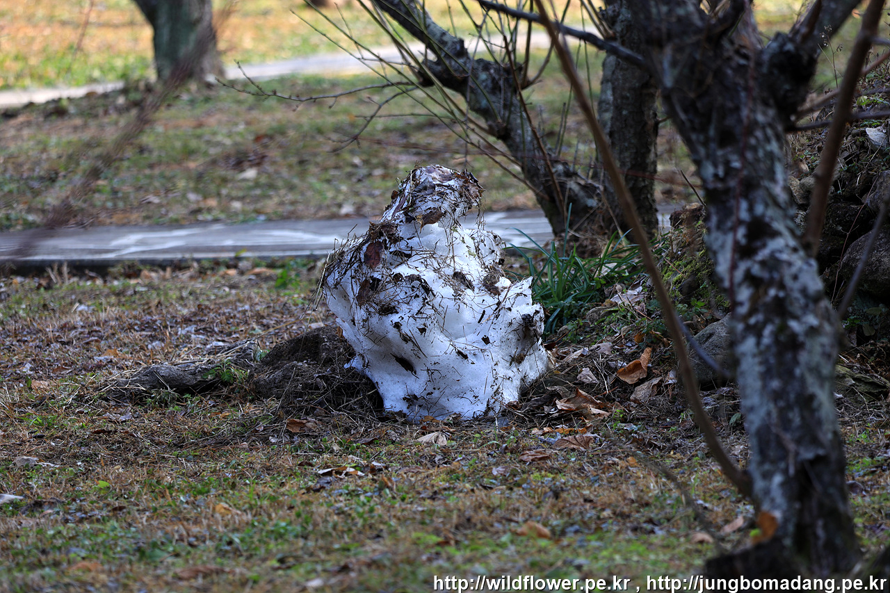 작년 12월에 내린 눈으로 만든 눈사람의 흔적