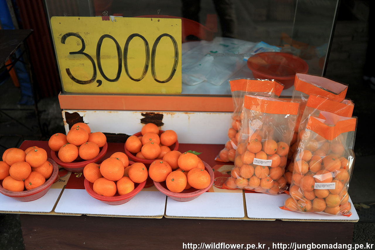 한라봉 아래칸은 5000원, 윗칸은 10000원. 5000원짜리 한라봉 한바구니 카드로 구매합니다.