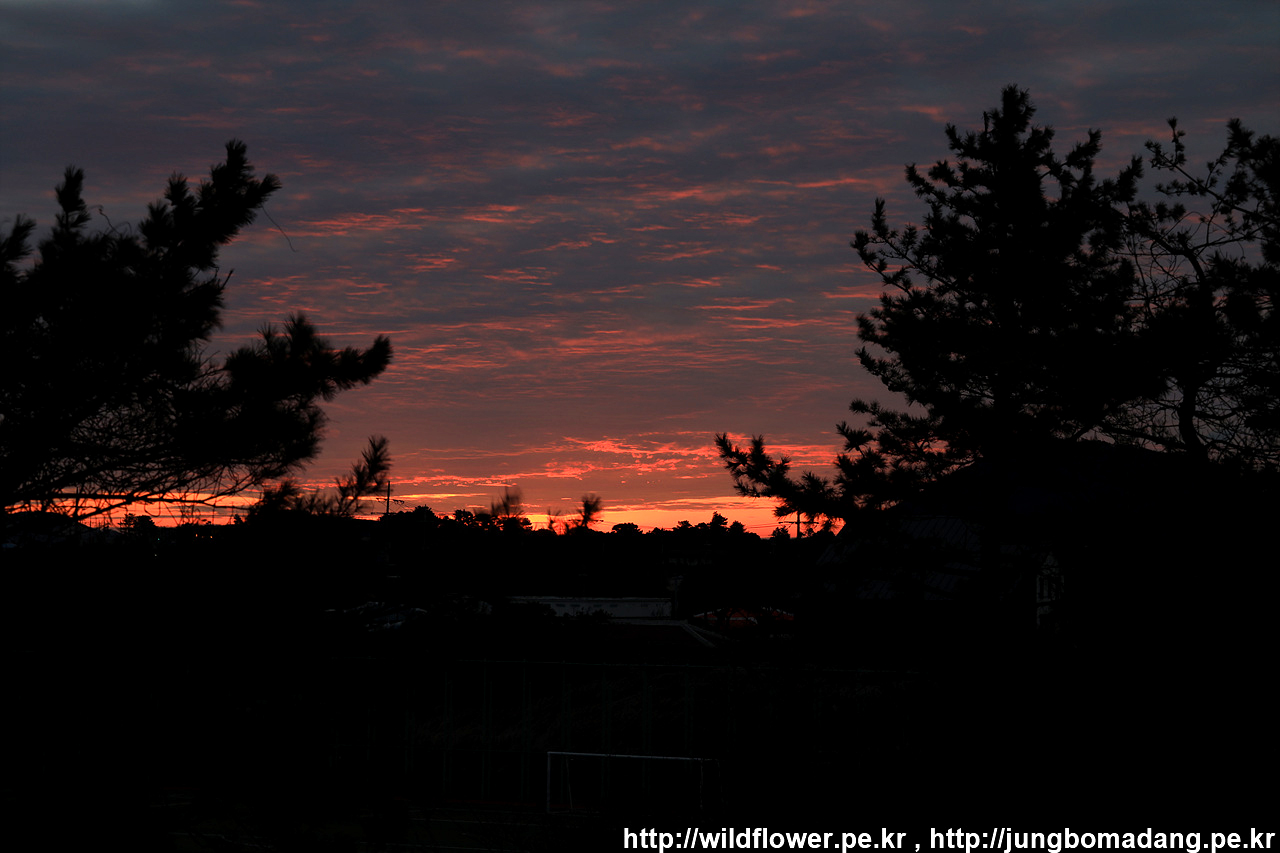 해가 뜨려고 합니다. 일출 시간 맞춰 기상을 했는 데, 구름이 많긴 하지만 일출은 볼 수 있겠네요.
