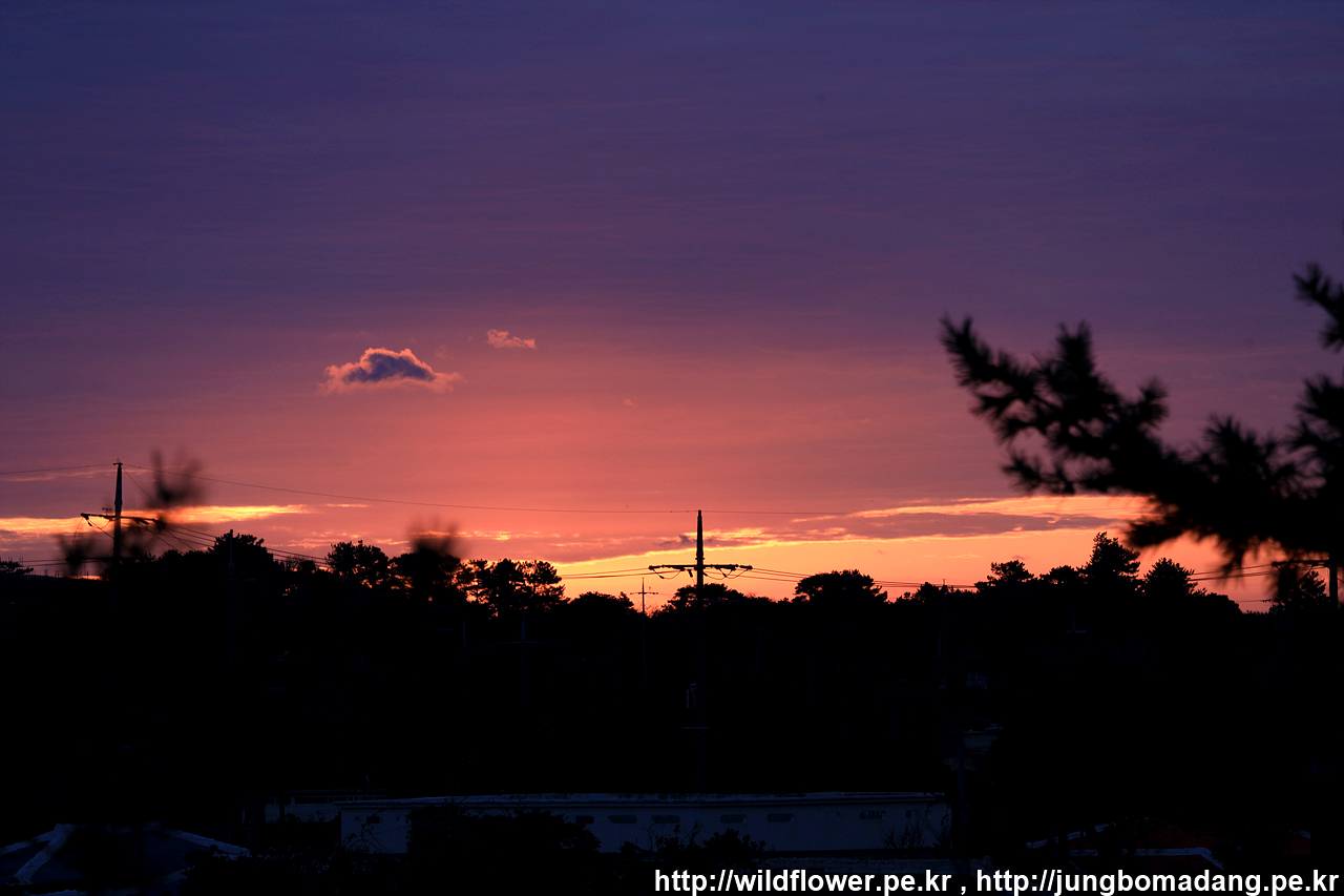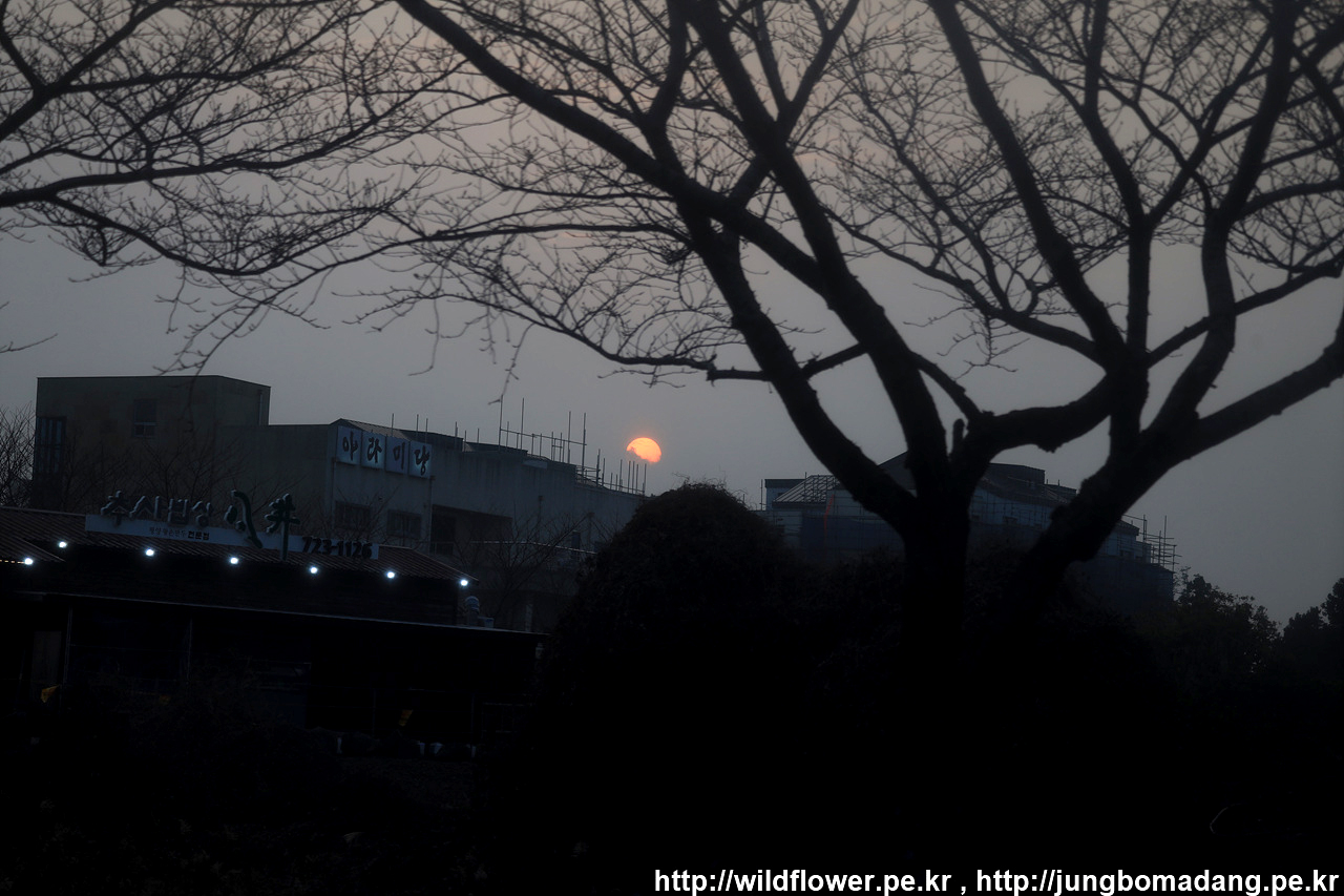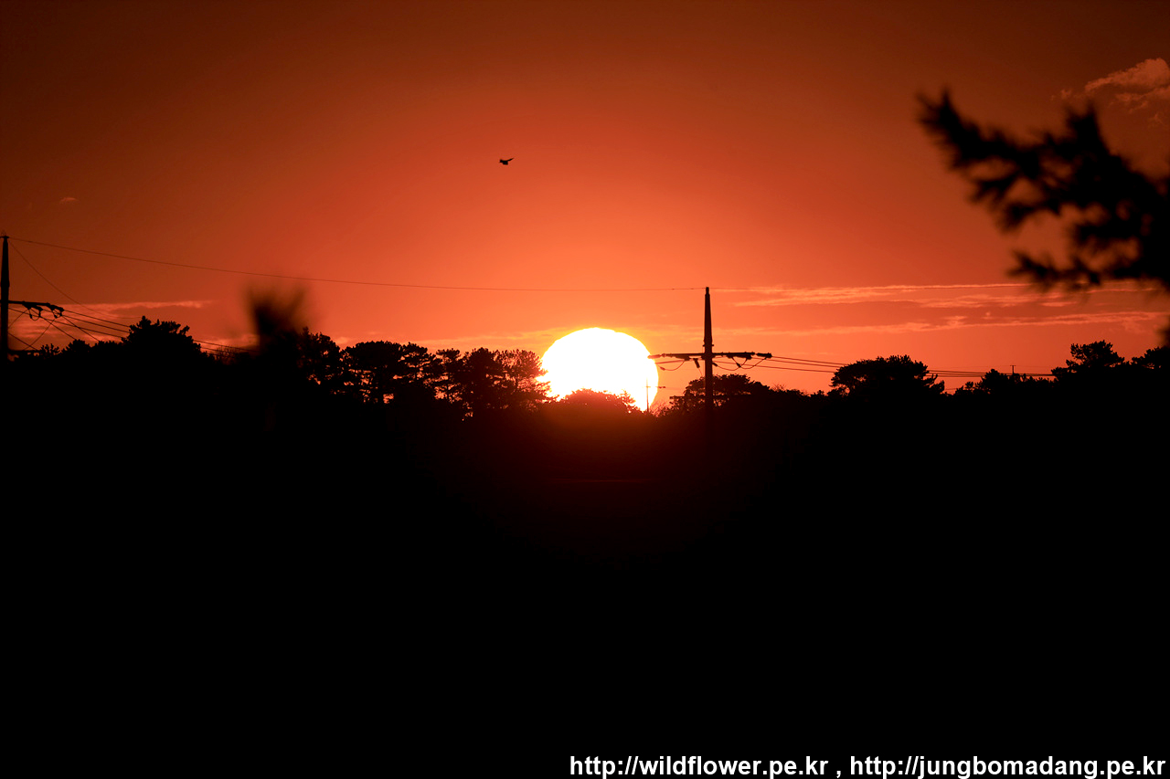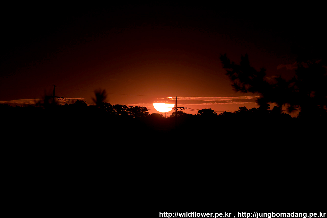 일몰 - 해가 능선에 걸려 넘어갈때까지 아시아나, 아시아나, 제주항공 세대의 비행기가 이륙을 합니다.