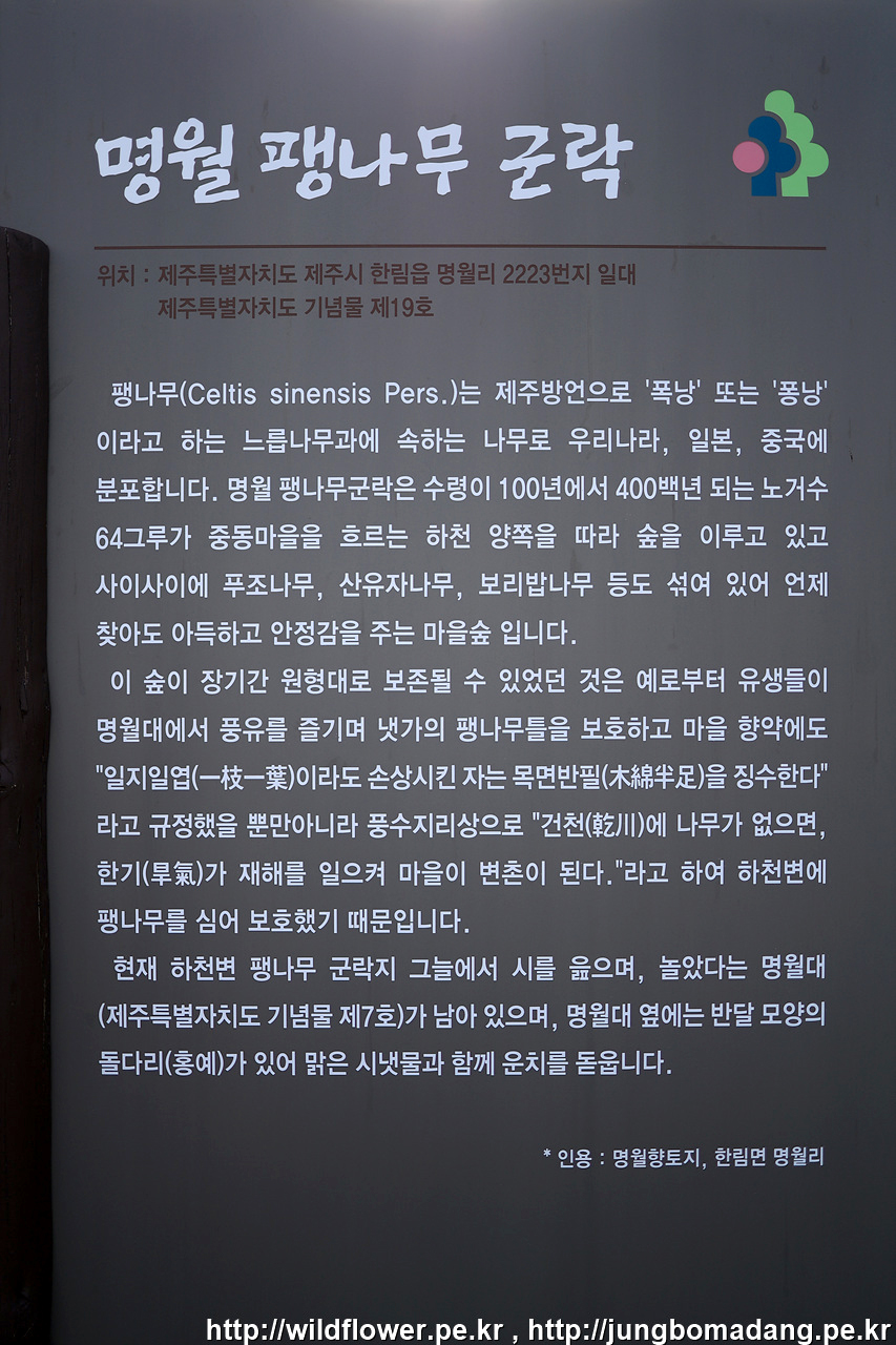 팽나무 군락 안내판 - 아랫편에 홍예에 대한 설명도 덧붙여 있습니다.