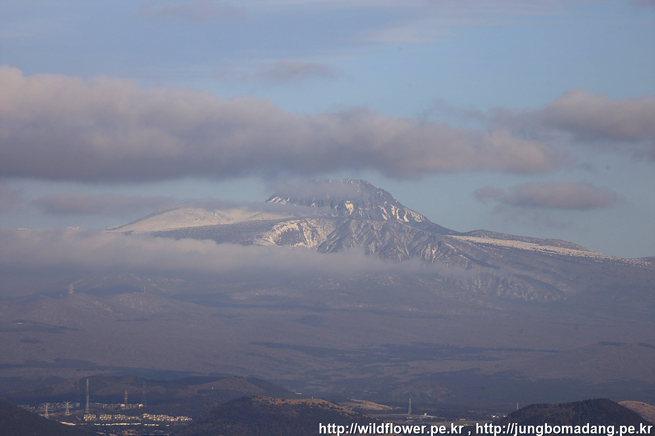 한라산에 점점 구름이 모이고 있습니다.