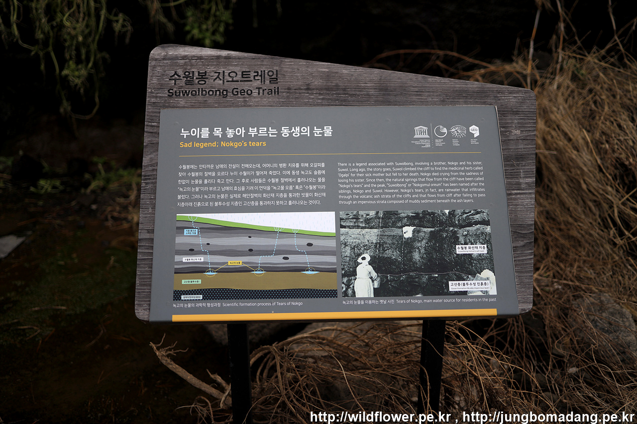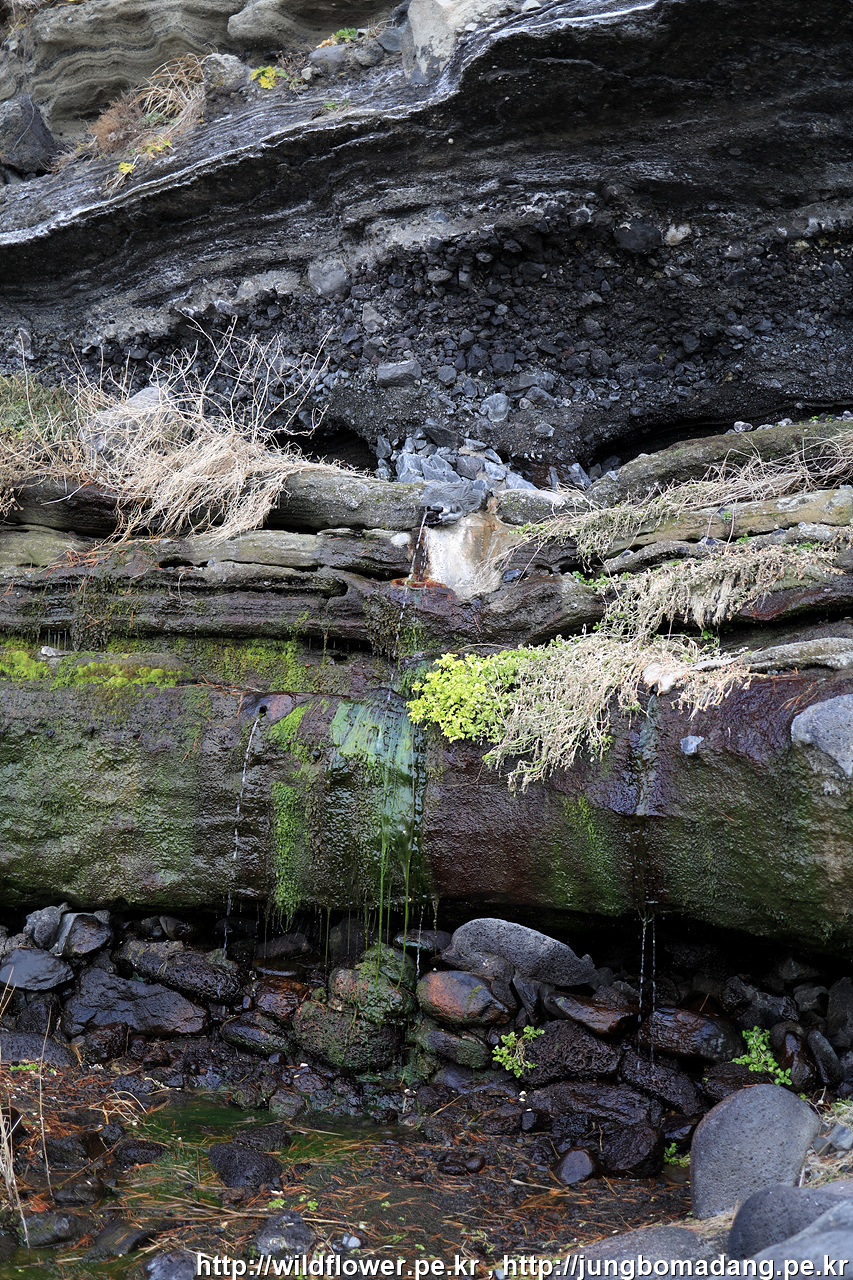 녹고의 눈물 - 빗물이 스며들어서 화산재 지층을 거쳐 내려오다가 고산층을 만나 투과하지 못해 흘러 나오는 물이며 먹지 말라고 여기 저기 안내가 되어 있습니다. 궁금해서 살짝 맛을 보니 물 맛이 별로 안 좋습니다.