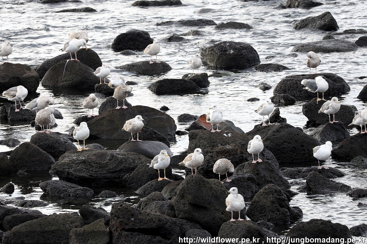 양식장 배수구 주면에는 언제나 새들이 만원입니다.