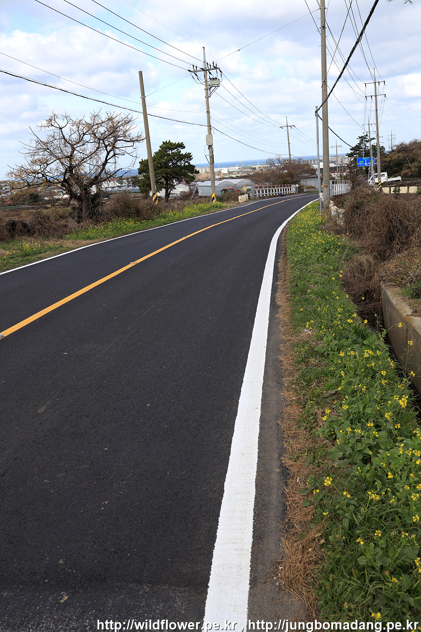 길 양쪽으로 유채가 보입니다. 아직은 부실한 상태지만, 1월 2일에 유채를 볼 수 있다는 것을 생각한다면 괜찮습니다.