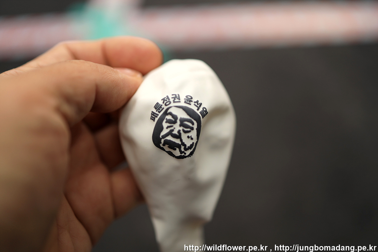 드디어 풍선을 가지고 음악에 맞춰 윤석열 풍선을 때리는 퍼포먼스를 합니다.