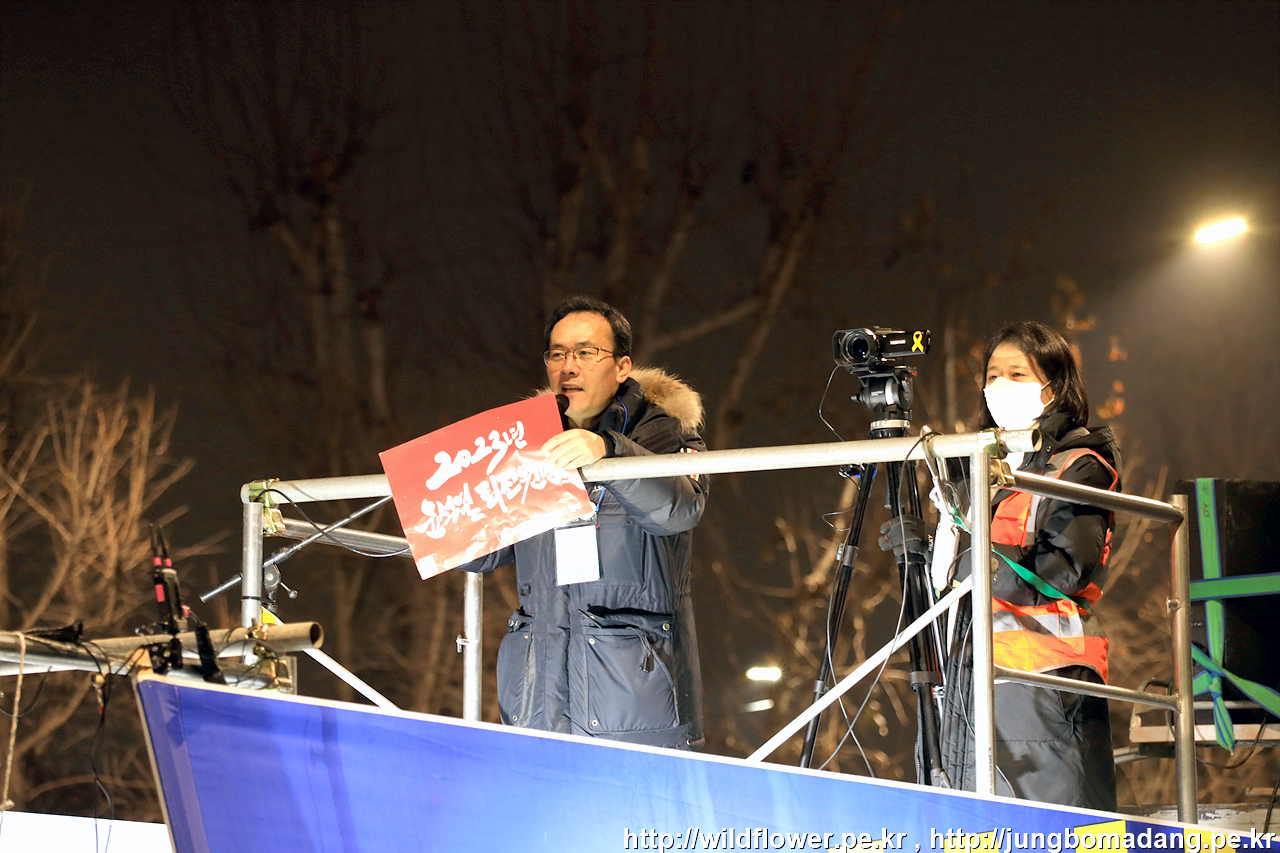 마무리 집회 시간. 촛불행동 권오혁 사무국장님.