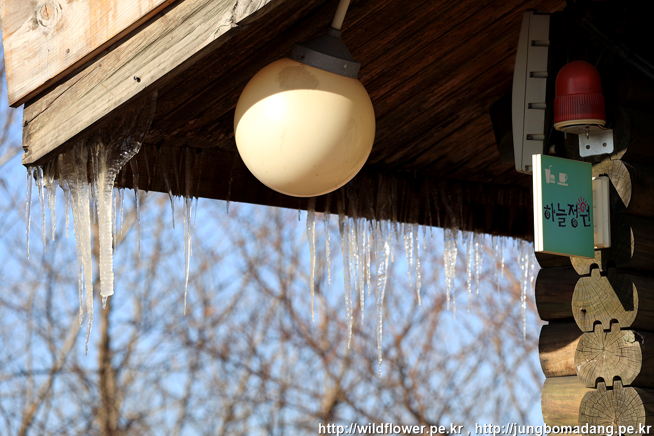 안내소는 문을 닫았고, 고드름이 지키고 있습니다.