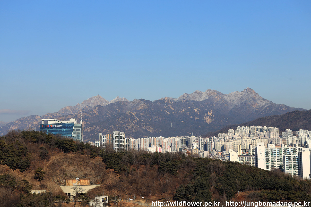 북한산이 어제 내린 눈으로 하얗네요.