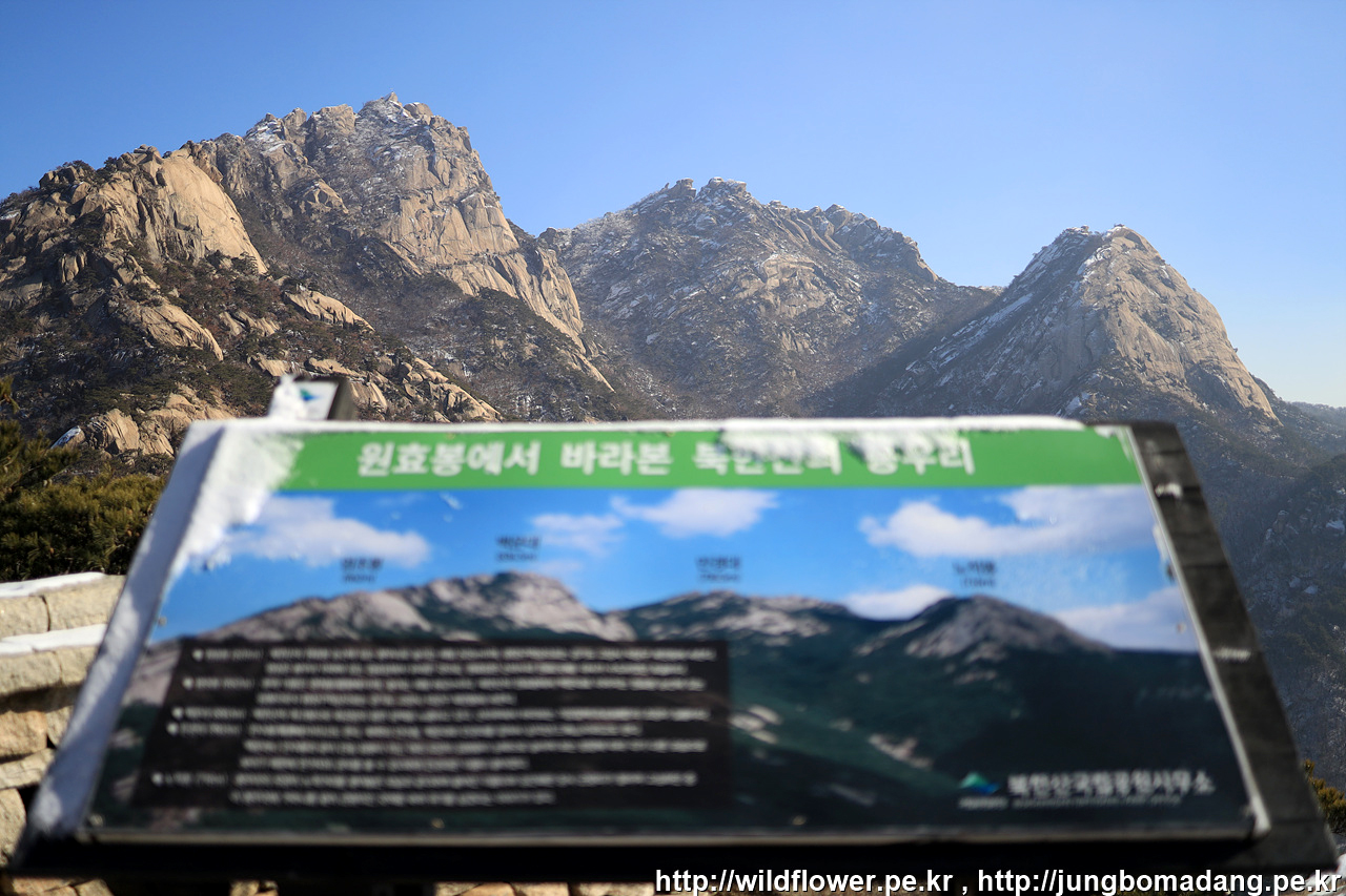 원효봉에서 바라본 북한산의 봉우리 - 안내판