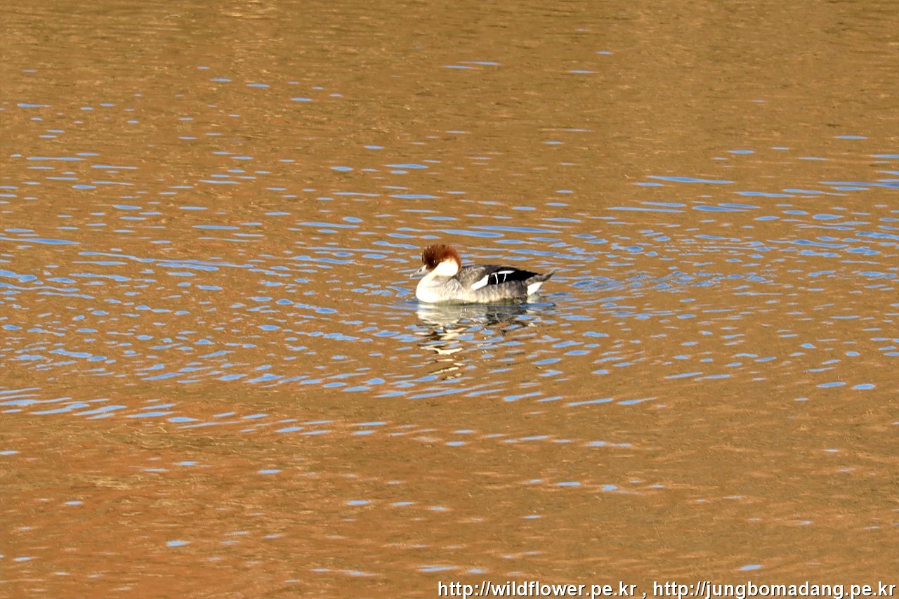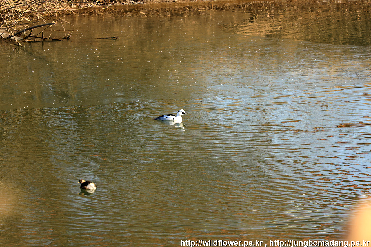 흰비오리 수컷(중), 논병아리(좌측 아래)