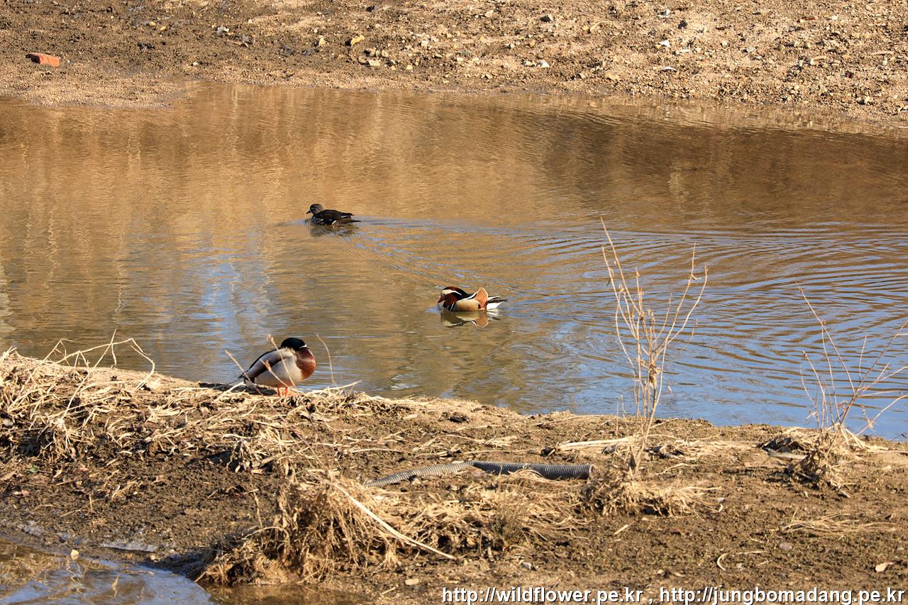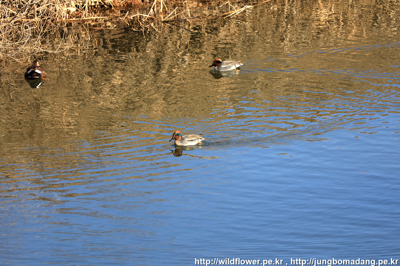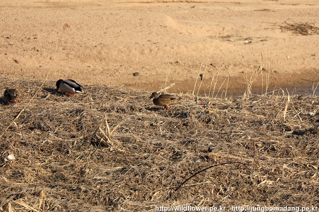 청둥오리 - 좌측 고개 숙인건 수컷, 중앙에 암컷