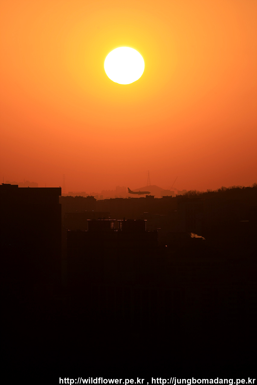 타이밍 맞게 착륙중인 비행기를 햇님 속에 가둬 봅니다.