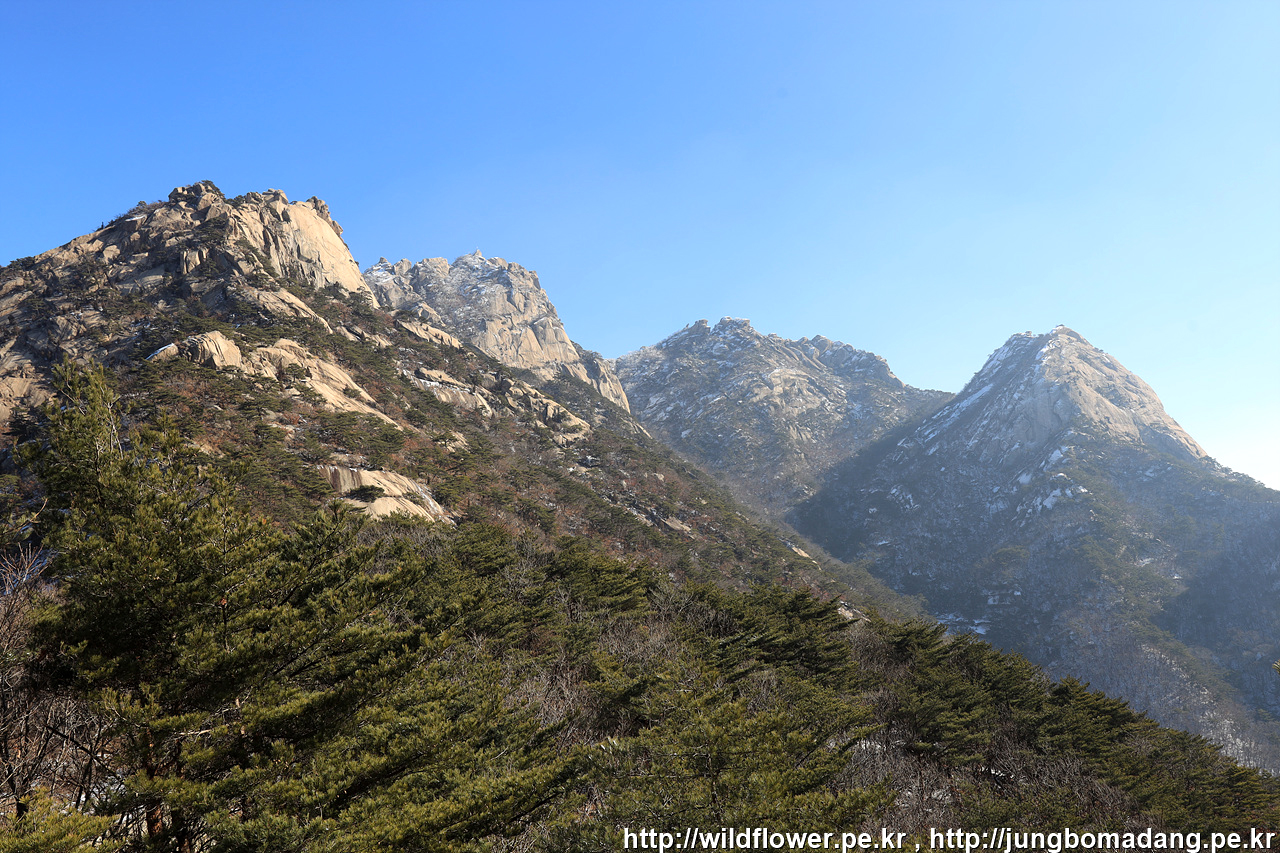 좌측부터 염초봉, 백운대, 만경대, 노적봉