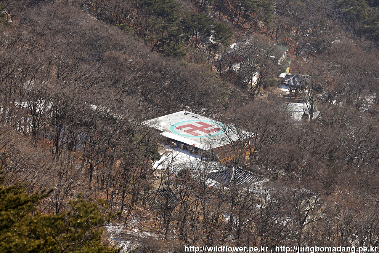 상운사에 있는 헬기장에 H 아닌 불교 문양인 만자 만(卍)자가 인상적이네요.