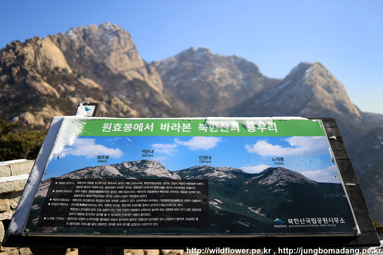 원효봉에서 바라본 북한산의 봉우리 - 안내판