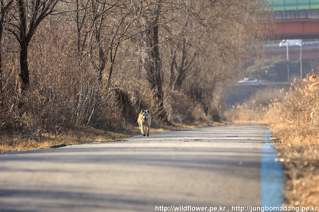 자전거 도로를 따라 이동하는 데, 건너편에서 순둥이 개 한마리가 한눈팔지 않고 슥~ 지나 갑니다.