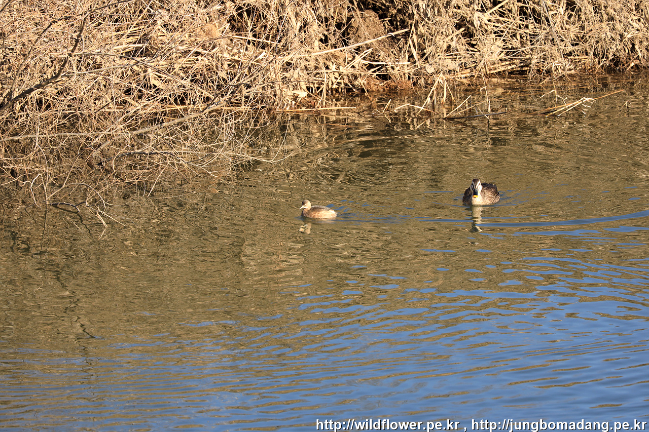 청둥오리 - 좌측 고개 숙인건 수컷, 중앙에 암컷