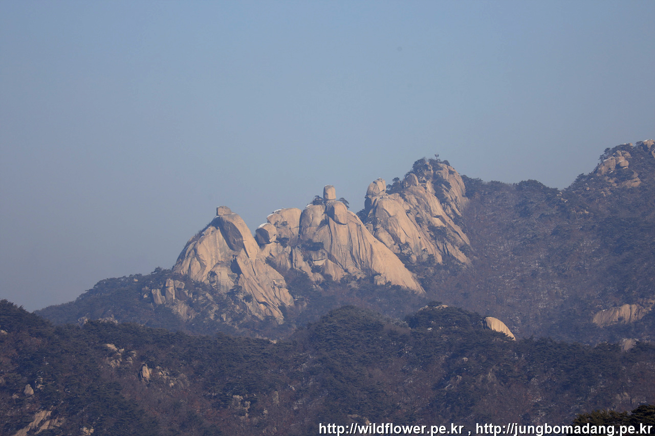 좌측부터 염초봉, 백운대, 만경대, 노적봉