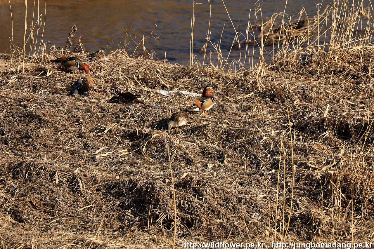 원앙 - 화려한 색은 수컷, 브라운색은 암