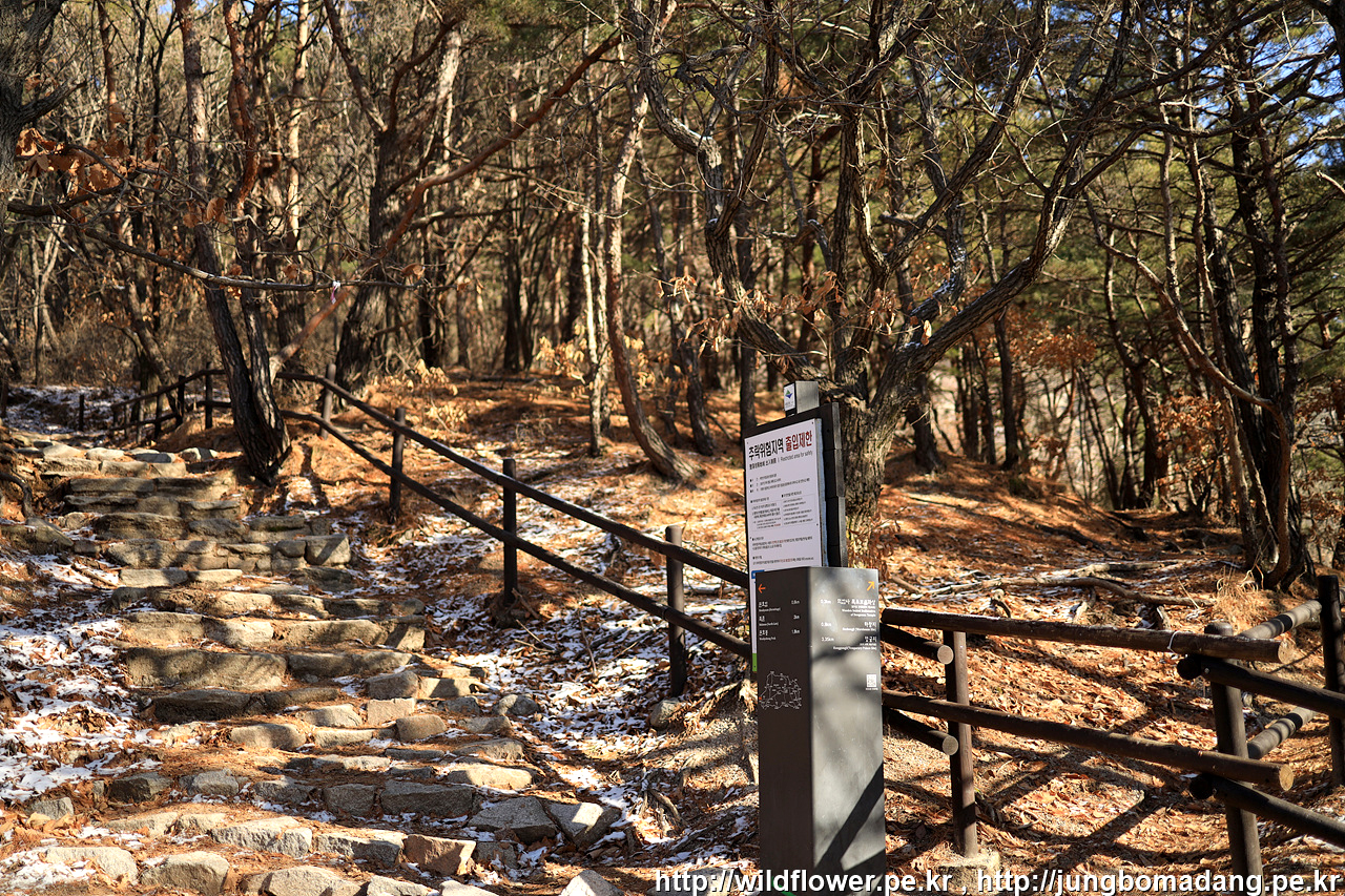 일부 언 구간이 있어 조심히 하산(아이젠은 왜 안챙기고...)합니다. 갈림길에서 원점회귀를 위해 가려 하는 데, 이 길은 북한산 둘레길 중 내시묘역길이네요.