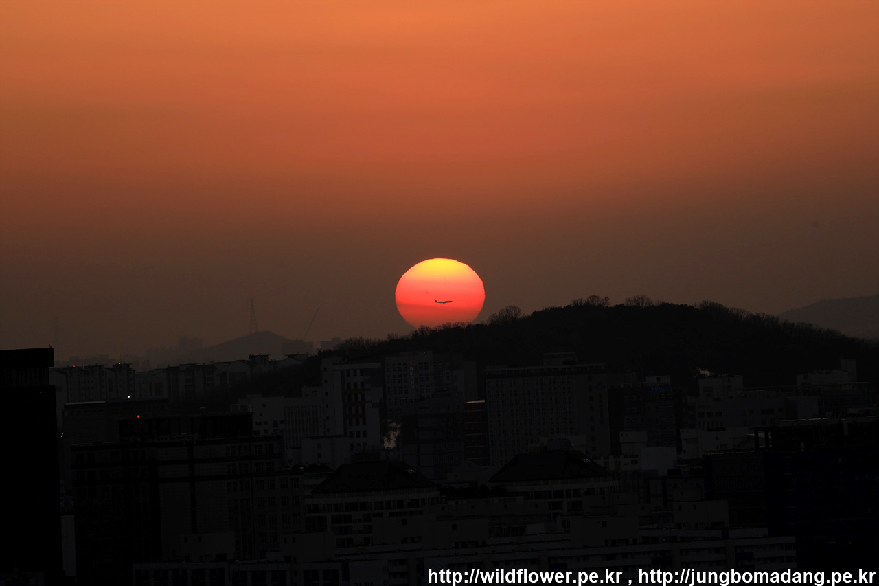 타이밍 맞게 착륙중인 비행기를 햇님 속에 가둬 봅니다.