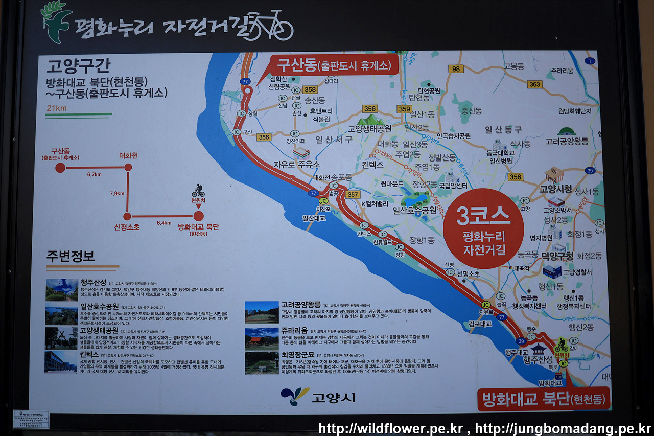 3시간 산행을 마치고 잘 세워둔 자전거를 이용해서 오늘은 성공하리라~ 하늘공원 일몰을 보러 가는 길, 한강쪽으로 방향을 잡습니다. 여기서 가려면 창릉천 길을 지나게 되죠.