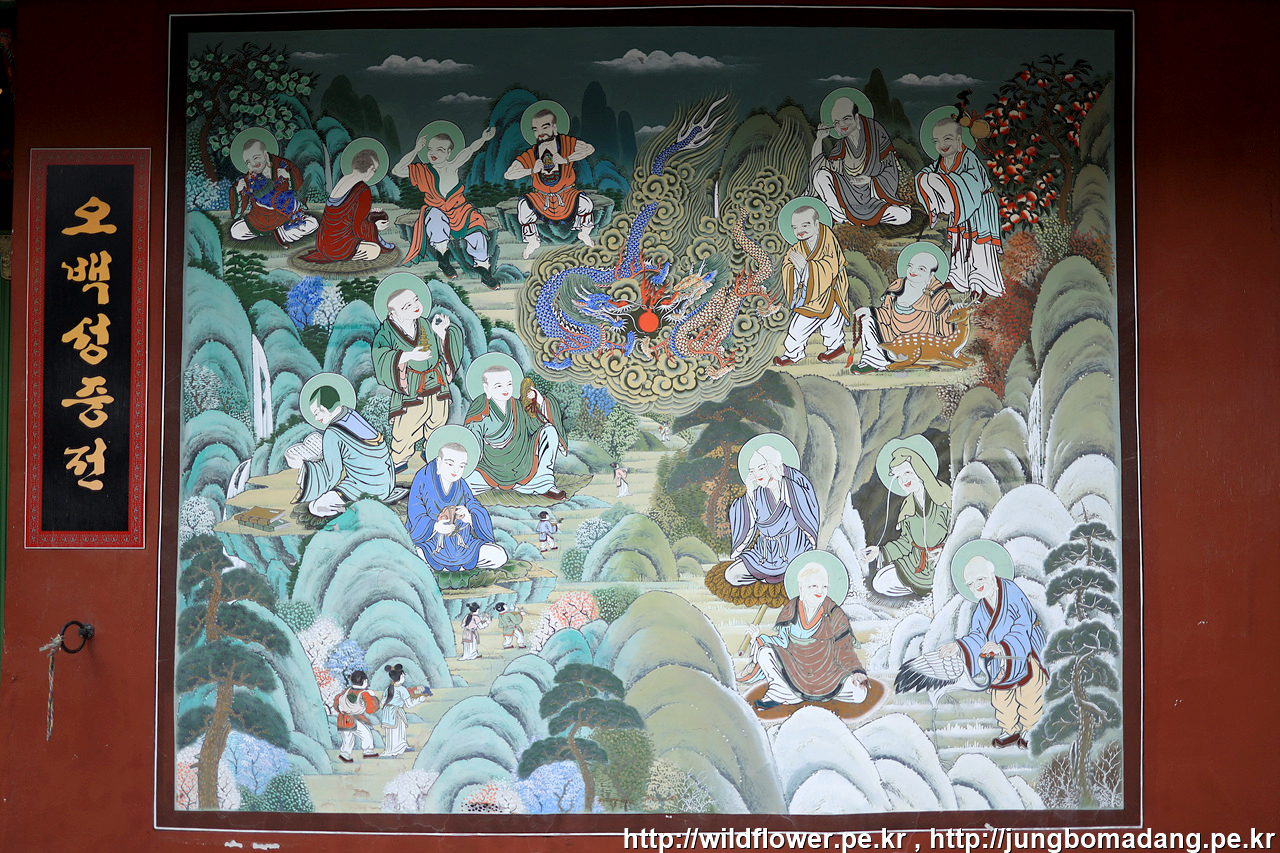가운데 3곳은 좌측부터 독성전, 칠성각, 나한전
