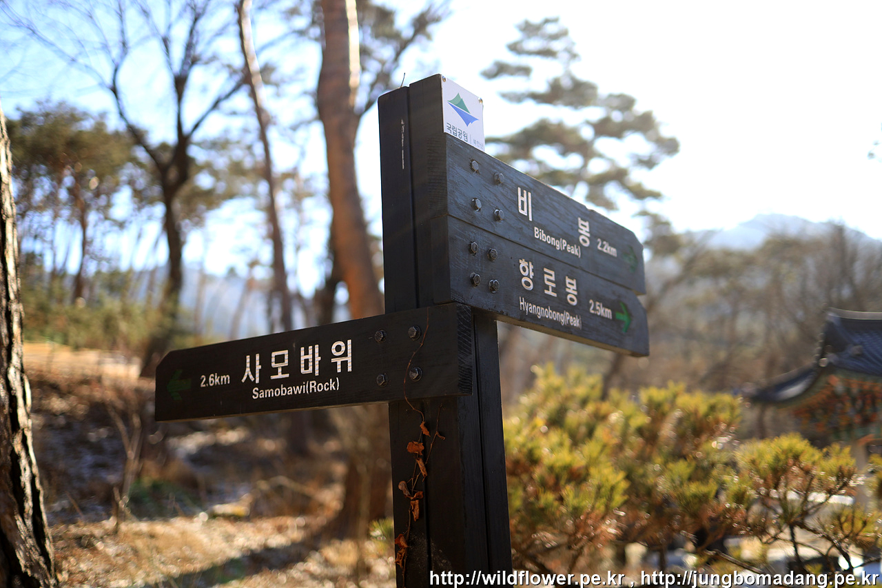 드디어 삼천사 방향 이정표 발견! 근데 길이 애매해서 방금 오른 길에서 좌측으로 90도 꺾인 길을 잘 찾아서 가야 합니다.