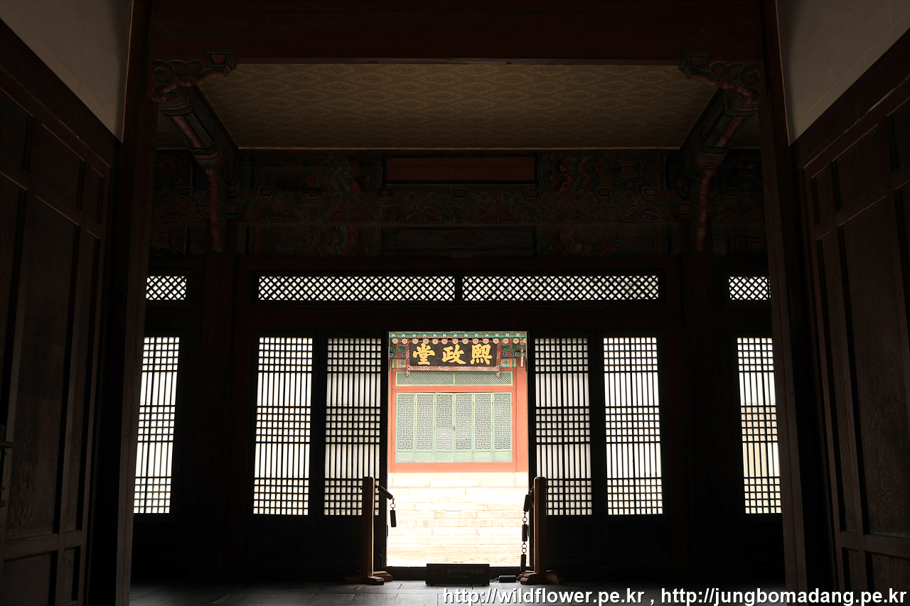 명정전 - 내부. 안쪽 상부에 봉황이 멋지네요!