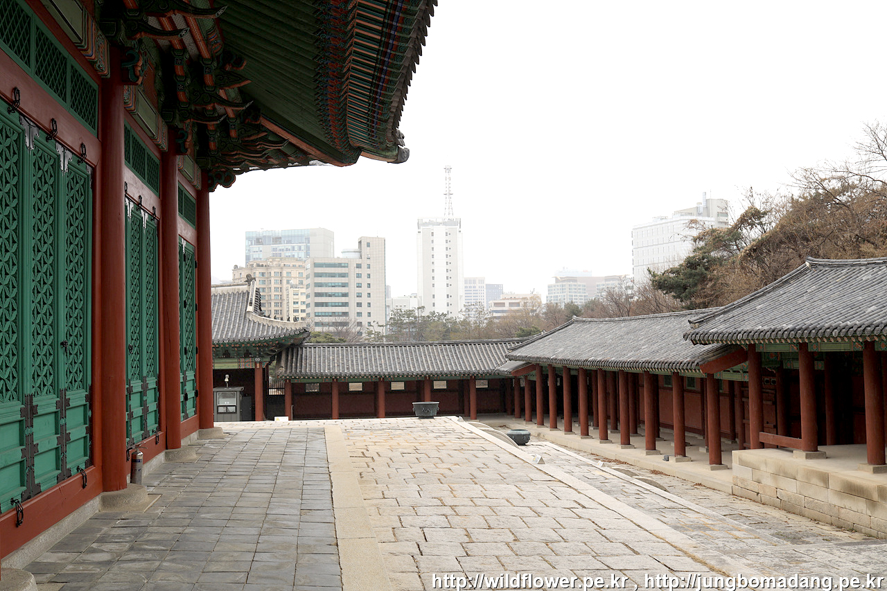 덕홍전(좌), 중화전(중), 살구나무(중), 석어당(우) - 석어당 앞에는 오래된 살구나무가 심어져 있습니다.