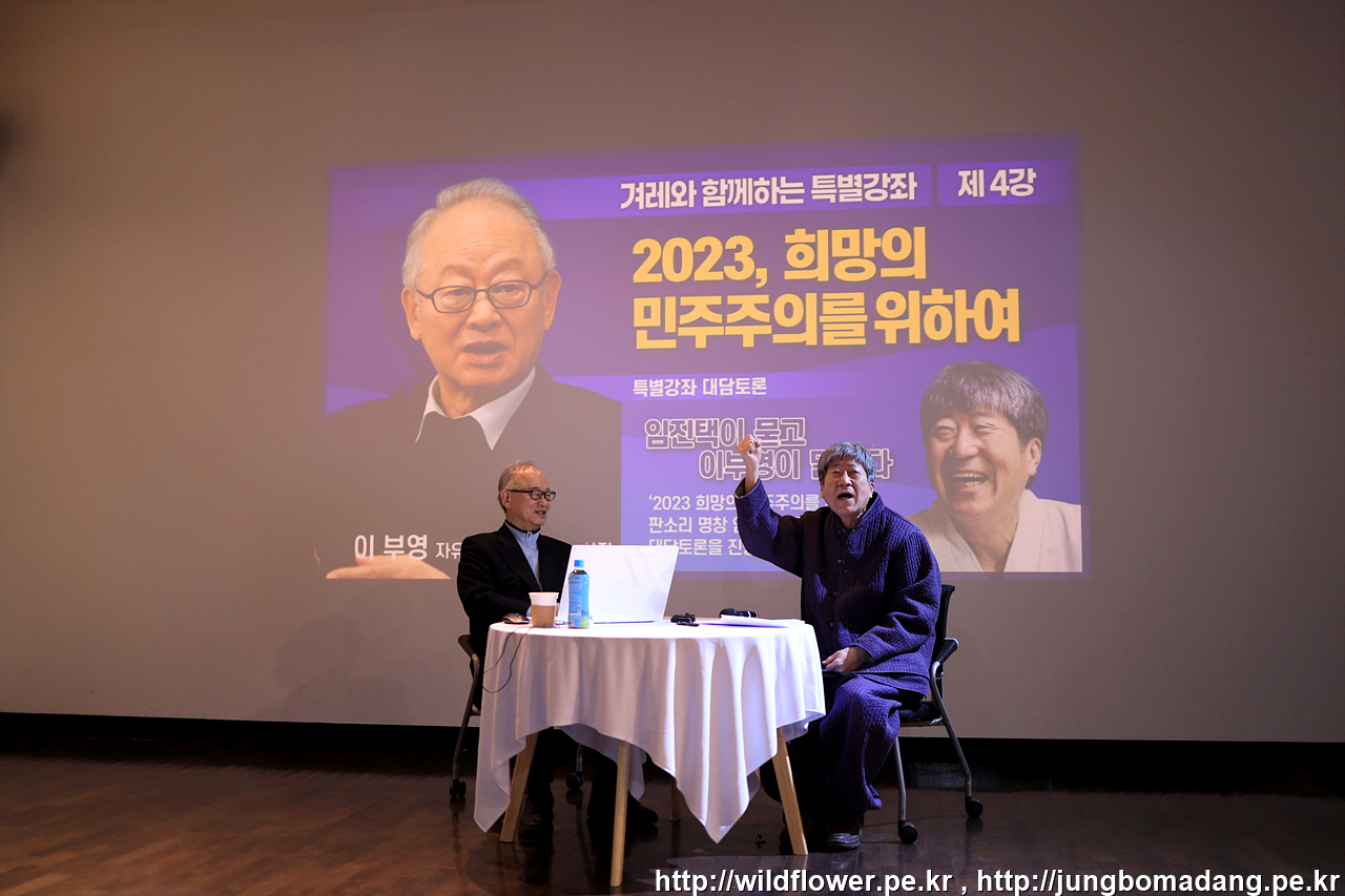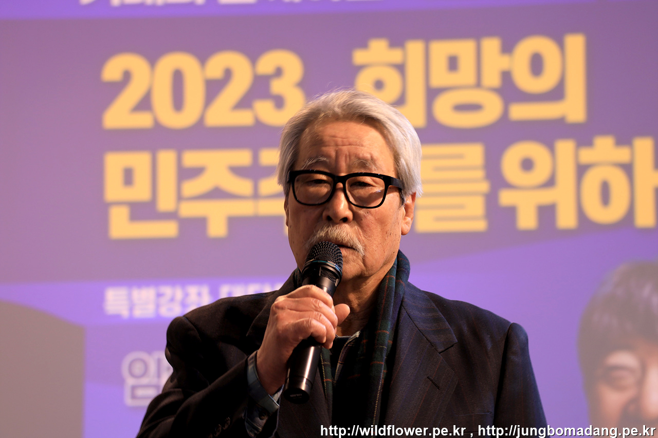 사회 - 이득신 작가님. 공동 주관사(돌베개 산악회, 민생경제연구소, 촛불행동) 인사 말씀 시간입니다.