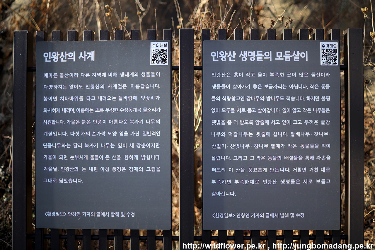 인왕산 정상까지는 가지 않고 얼마전에 완주해서 걸었던 인왕산 둘레길 일부(~윤동주문학관)를 따라 걸어 봅니다.