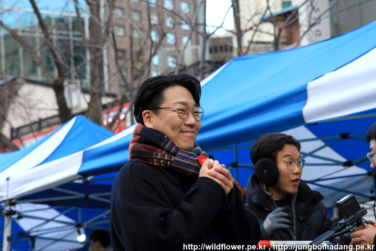행진 시간입니다. 그런데 개인적으로 작은 문제가 발생합니다. 추운 날씨 앉아 있다 일어 나는 데 다리에 통증이 심해서 함께 행진을 못하고, 집으로 귀가 하였습니다. 지금은 이상 없습니다.