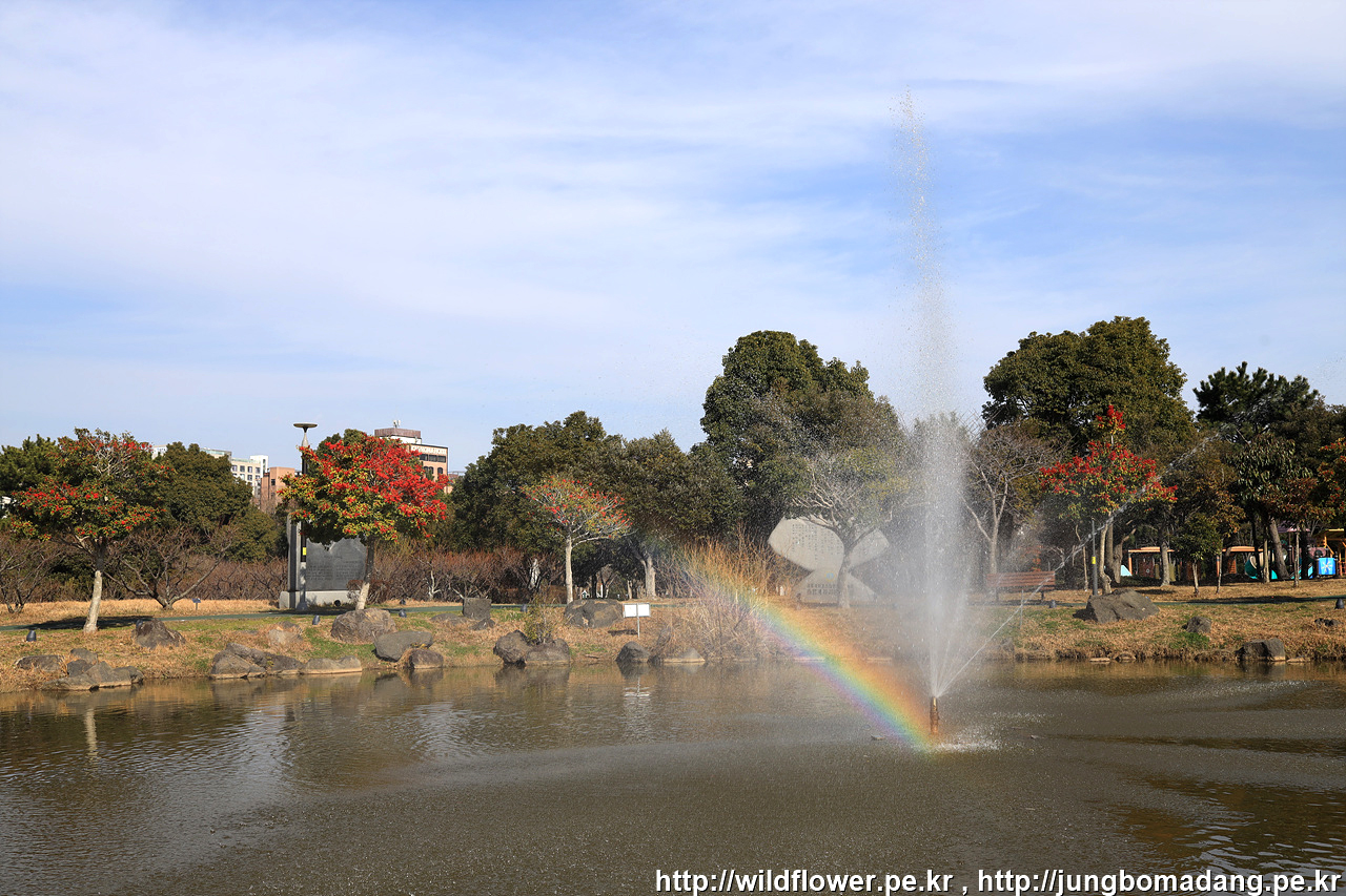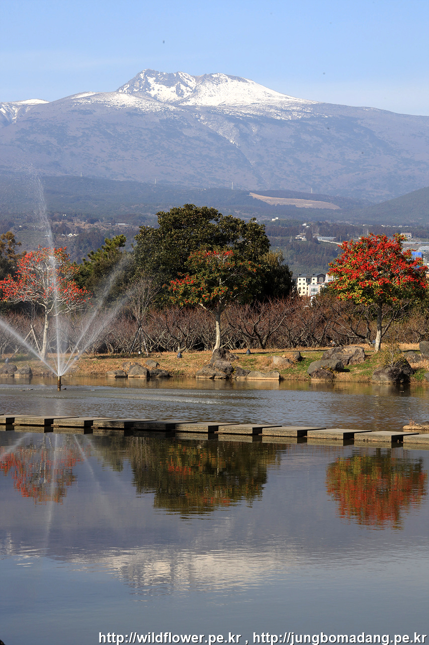 분수 덕분에 무지개는 봤지만, 한라산 반영이 물결 덕북에 썩 만족 스럽지가 않습니다.
