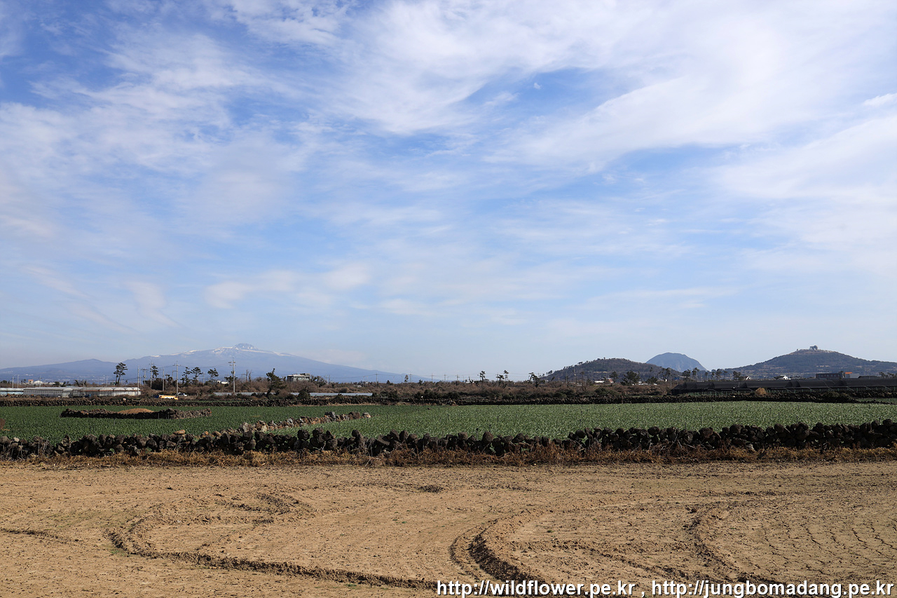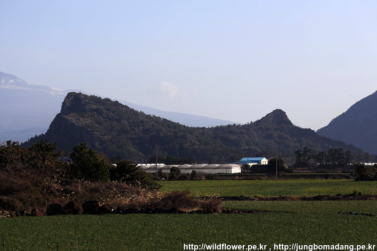 한라산(좌), 가시오름(우), 산방산(우), 모슬봉(우)
