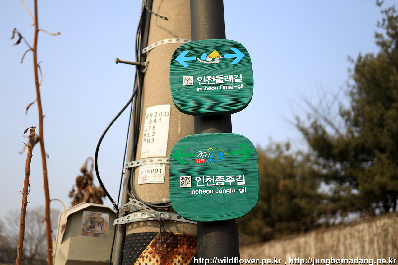걸어가는 길에 전봇대에 인천둘레길, 인천종주길 표시가 보입니다. 굴다리를 지나구요.