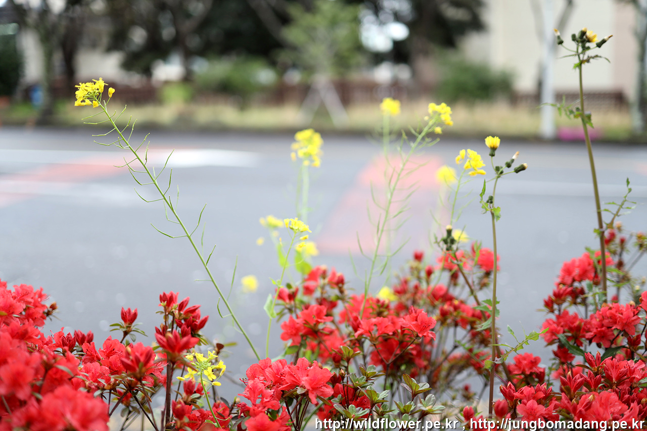 영산홍(적색)과 유채(노랑)