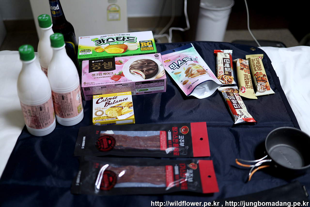 초록색 뚜껑의 제주막걸리 3병과 맥주 1병 구매하고, 나머지는 집에서 챙겨온 안주거리로 간단히 한잔하고 잡니다.