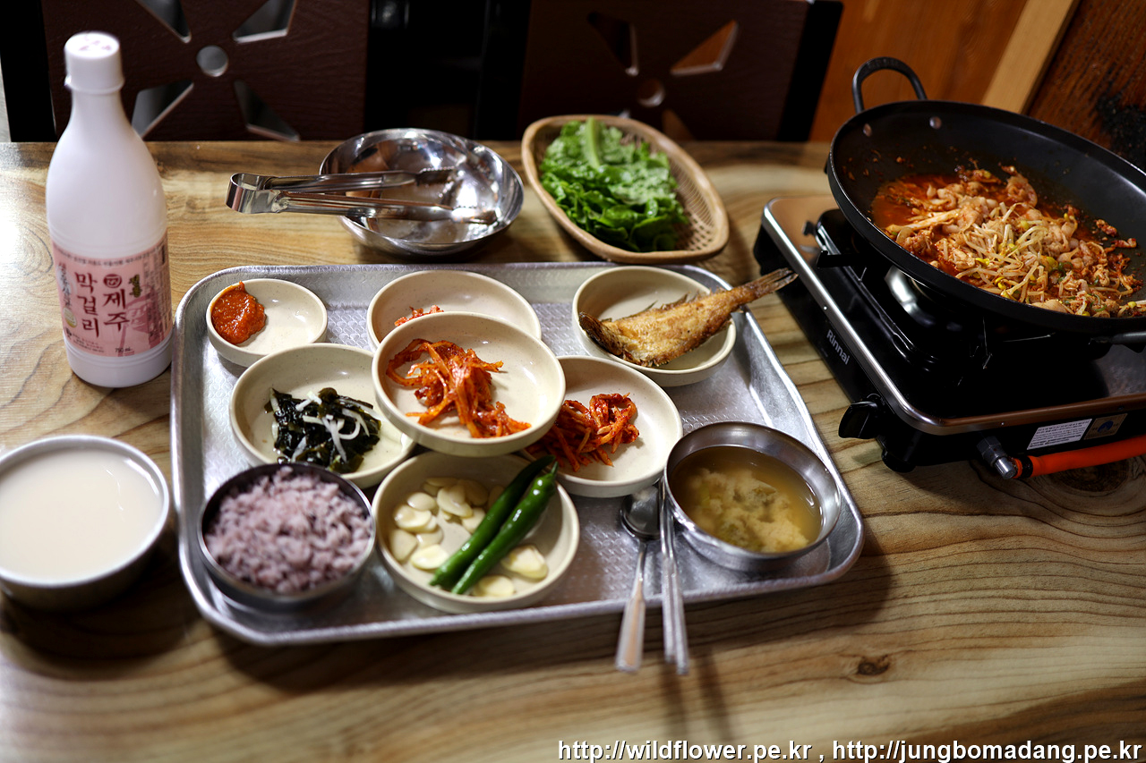 저녁 비행기를 타기 전 두루치기 만찬을 먹습니다.
