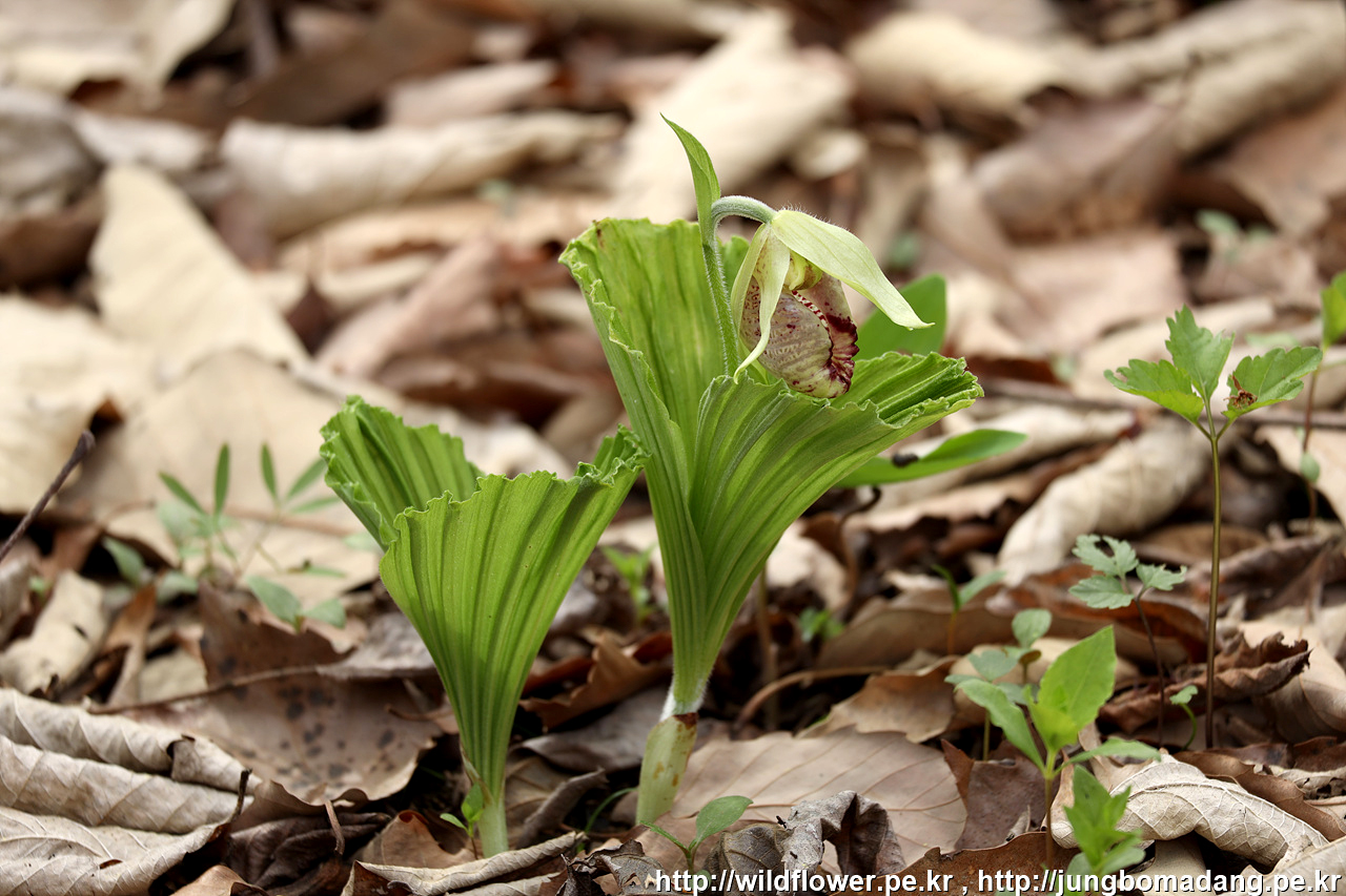 광릉요강꽃 - 대부분 개화 중이고, 일주일 정도 지나면 어느정도 괜찮은 상태로 볼 수 있을 것 같네요. 잎이 참 특이하죠?